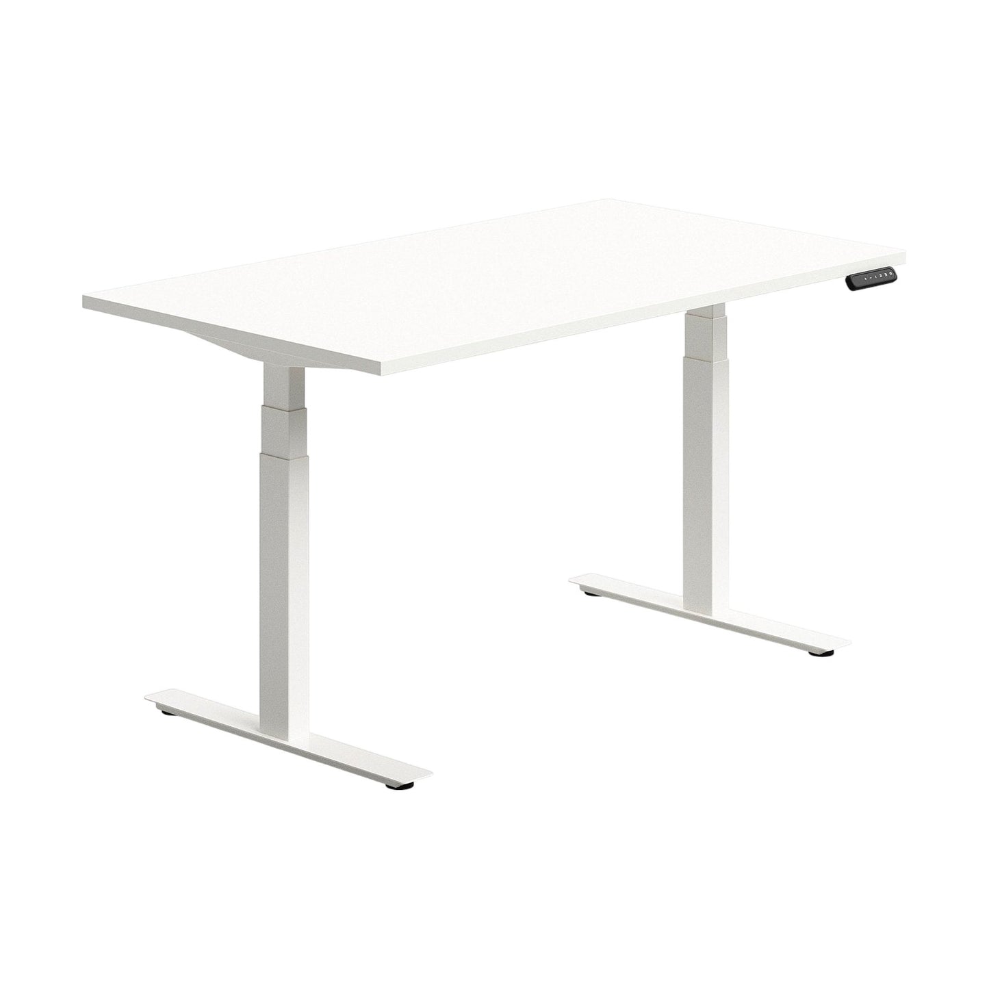 Elektrisk hev/senk understell fra QBUS i fargen hvit. Det er kun understellet, og ikke bordplaten som selges. Både 140 cm og 160 cm lange bordplater kan passe til dette understellet. Dybden på bordplaten burde minst være 90 cm.