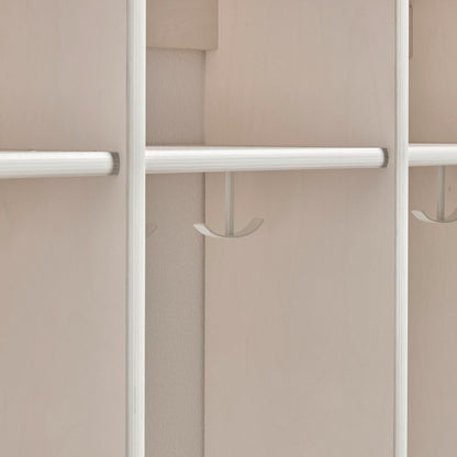 Praktisk veggmontert klesoppbevaring fra AJ Produkter, designet med kroker, en integrert sittebenk, skohylle og romslig hylle. Denne oppbevaringsløsningen er ideell for garderober og korridorer, og maksimerer plassen effektivt.