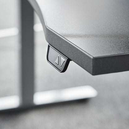 Praktisk elektrisk hev- og senkbart skrivebord fra AJ Produkter. Utstyrt med magebue og kabelhull i bordplaten for enkel kabelføring. Bordet har et robust T-stativ og justerbare føtter for stabilitet.