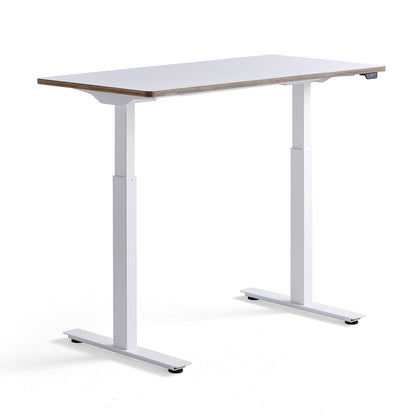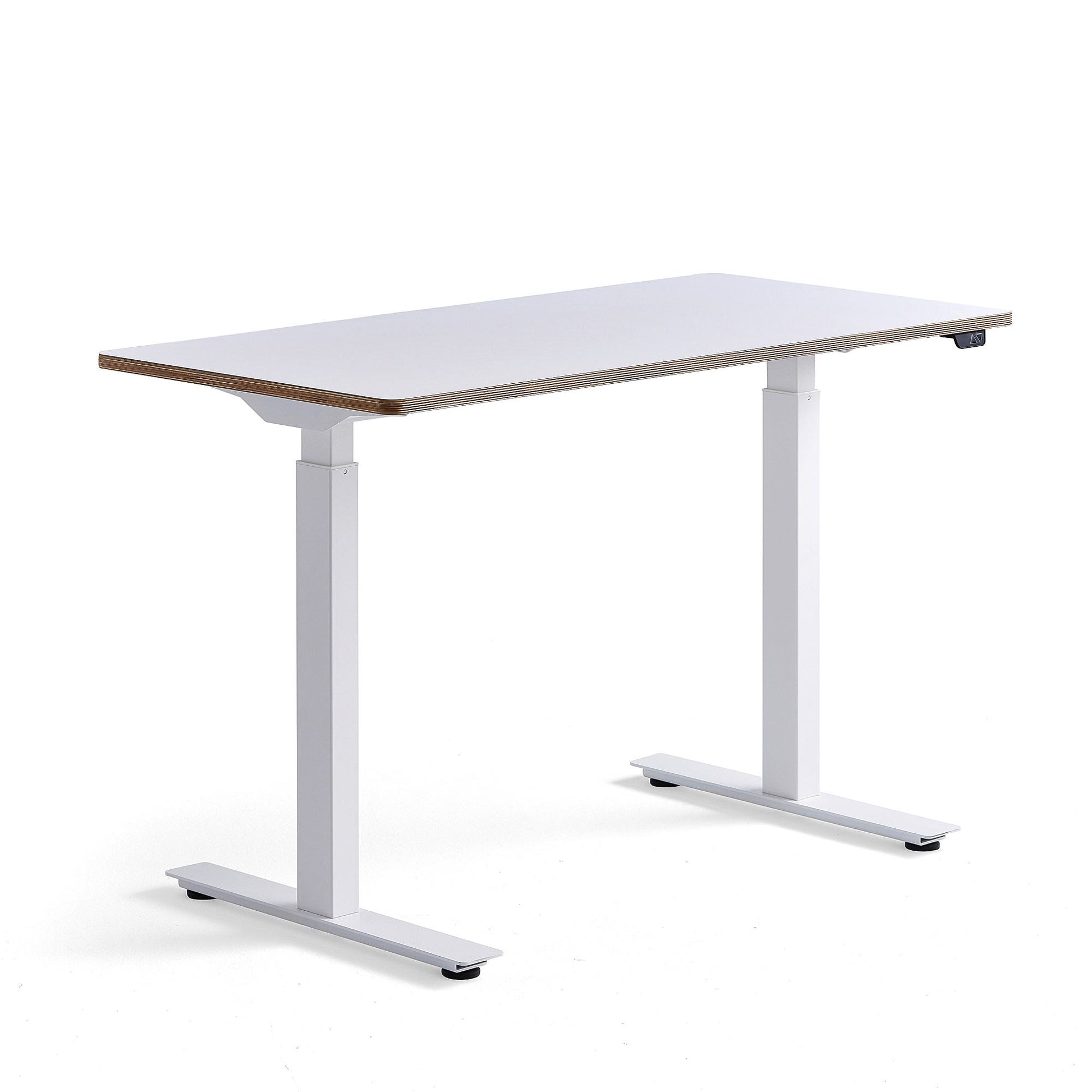 Skrivebord NOVUS, hev/senk, L1200 B600 H705–1175 mm, hvitt stativ, hvit bordplate