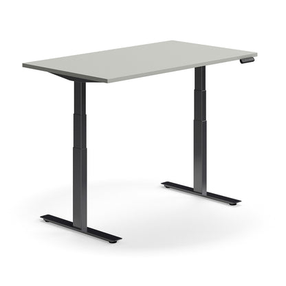 Fleksibelt skrivebord fra AJ Produkter, perfekt til kontoret. Den elektriske høydejusteringen gir deg mulighet til å variere mellom sittende og stående arbeidsholdninger, noe som bidrar til bedre ergonomi og komfort.