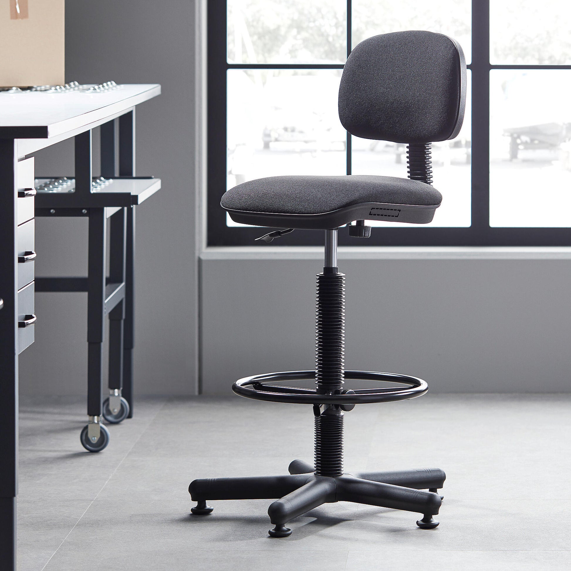 Helt nytt | Verkstedstol ADELAIDE, glideføtter og fotring, svart stoff