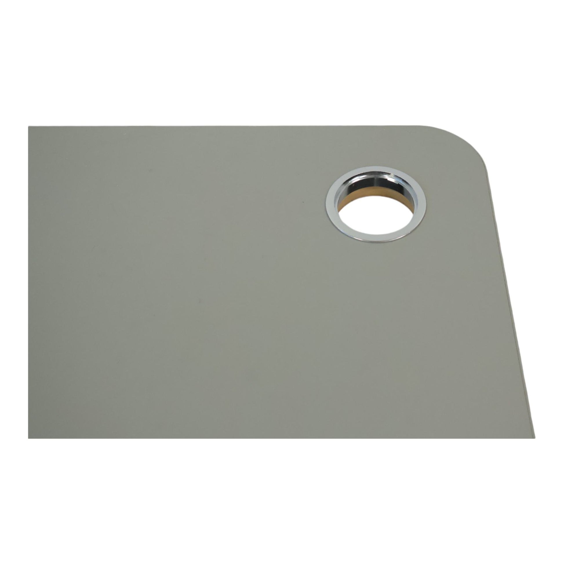 Funksjonelt manuelt justerbart skrivebord med buet kant, ideelt for et ergonomisk arbeidsmiljø. Bordet har en stor overflate som gir god plass til utstyr og arbeid, samt kabelhull for enkel organisering av ledninger.