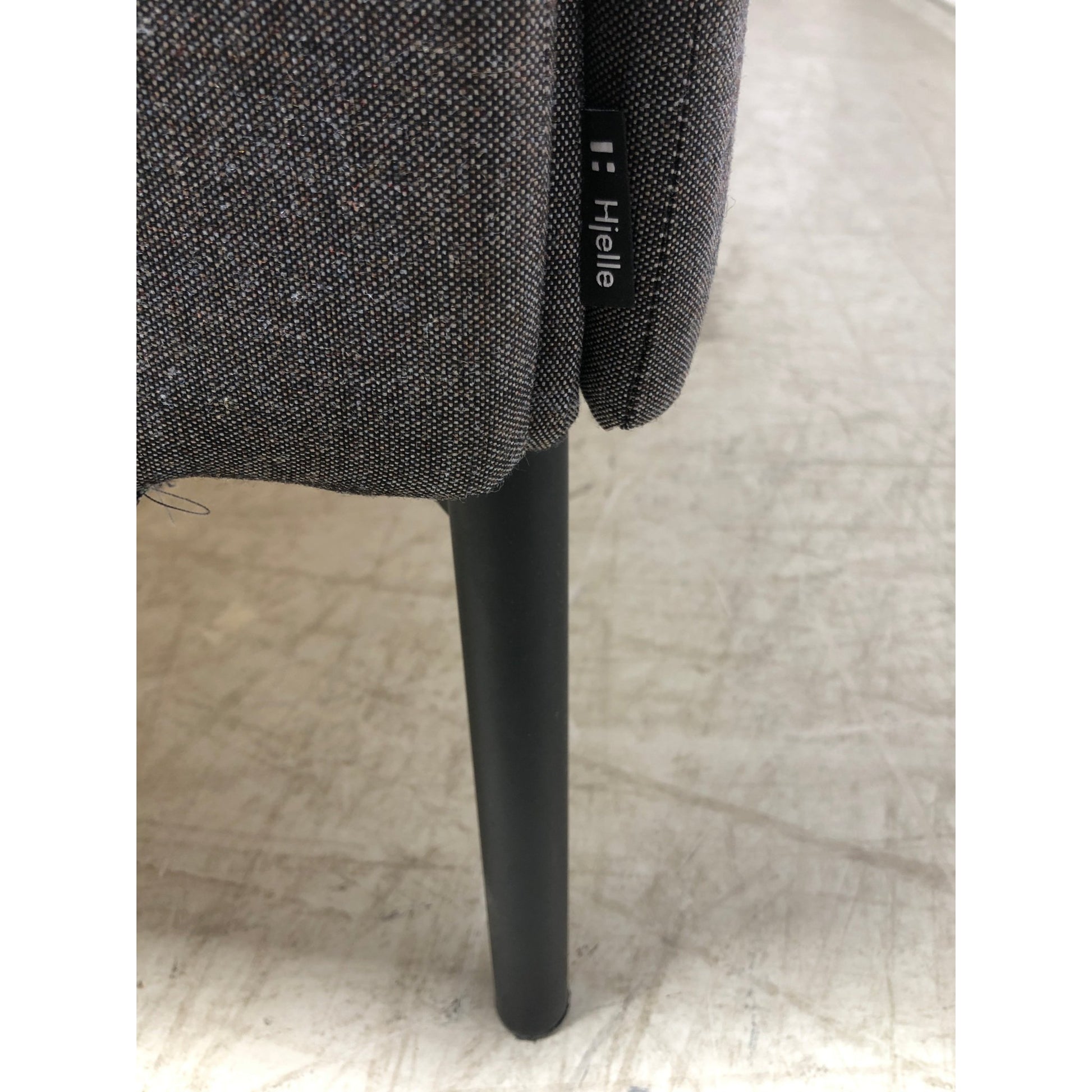 Sofaen er i god tilstand uten synlige bruksmerker, og gir et flott uttrykk i kontormiljøet. Den ene endedelen mangler borrelås til å feste trekket nederst som vist på bildene. Det mangler også to av de små ryggputene til den ene sofadelen. Ellers er sofaen i veldig fin stand og et utmerket valg til kontoret.