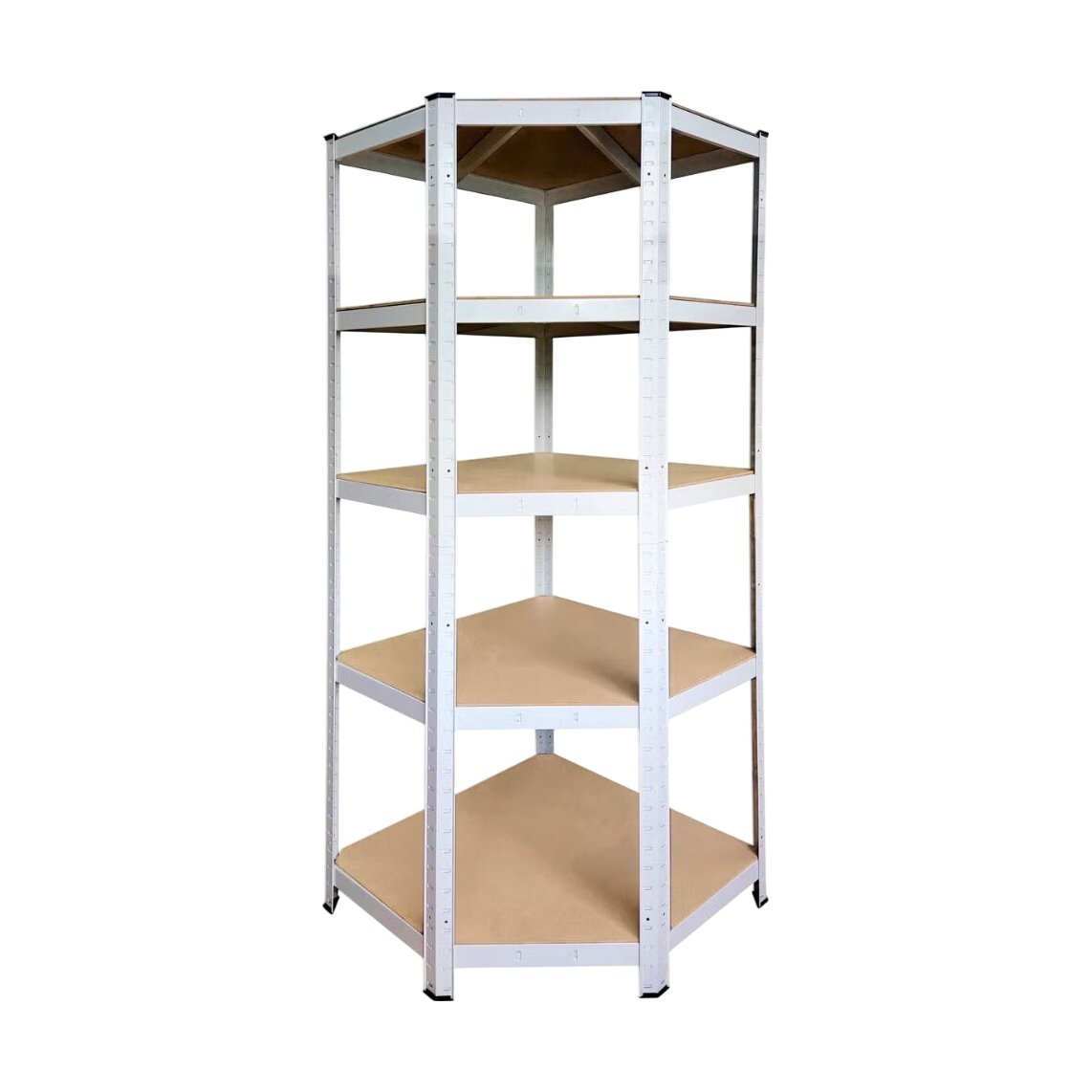 Solid og funksjonell hjørnehylle fra Clas Ohlson designet for effektiv oppbevaring i garasje eller bod. Med 5 hylleplater kan den enkelt utnytte hjørner og er i stand til å bære opptil 175 kg per plate, noe som gjør den perfekt for lagring av esker og annet utstyr.