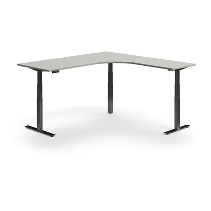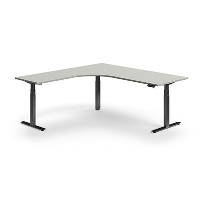 Hjørneskrivebord QBUS, hev/senk, L200 B200 cm, svart, lys grå