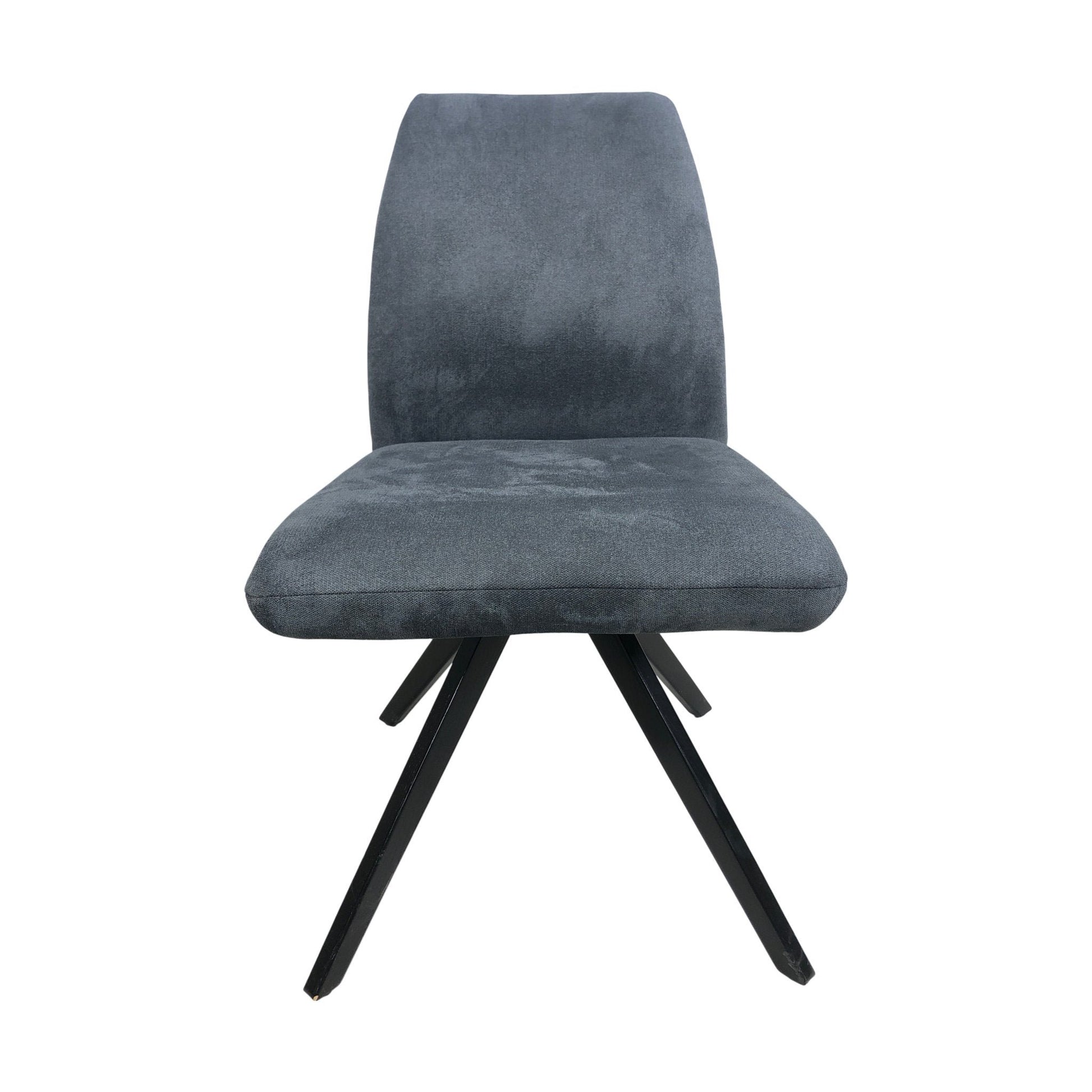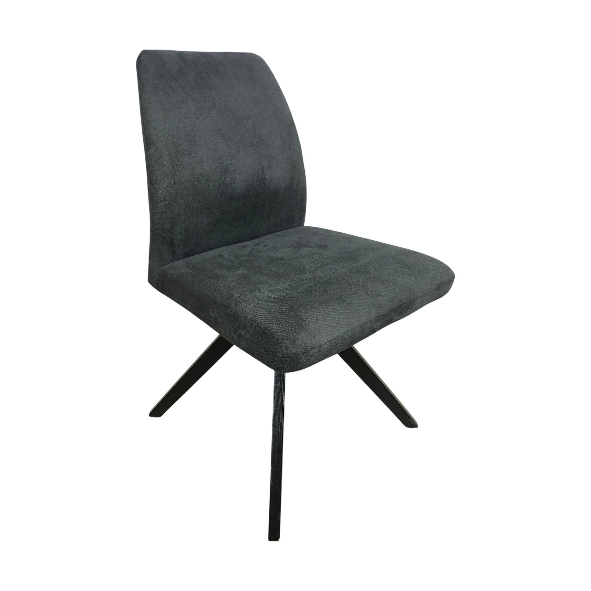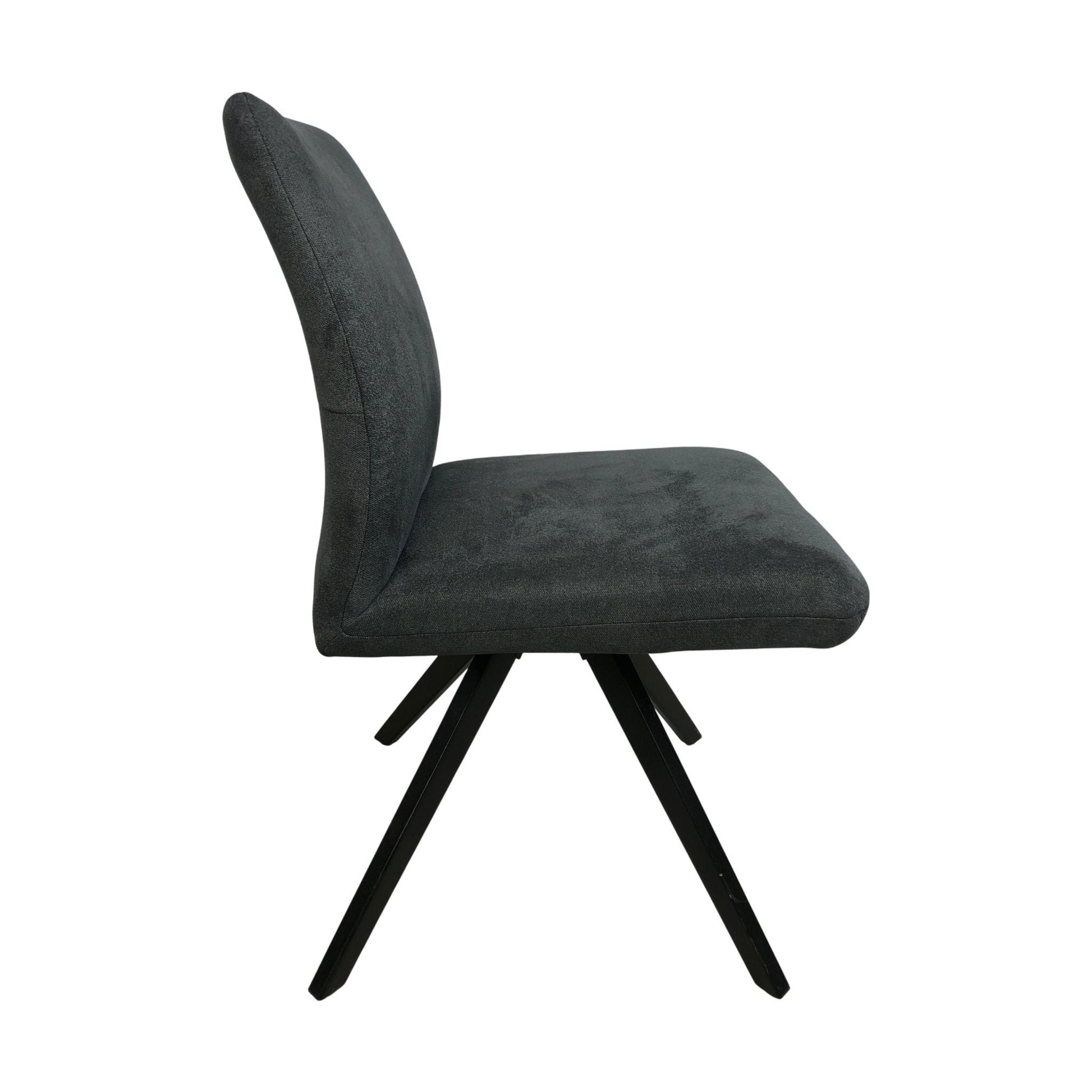 Hjort Knudsen spisestol med grågrønn tekstil i mikrofiber og sortmalte treben med sving-funksjon. Stolens design sørger for en funksjonell og fleksibel opplevelse.