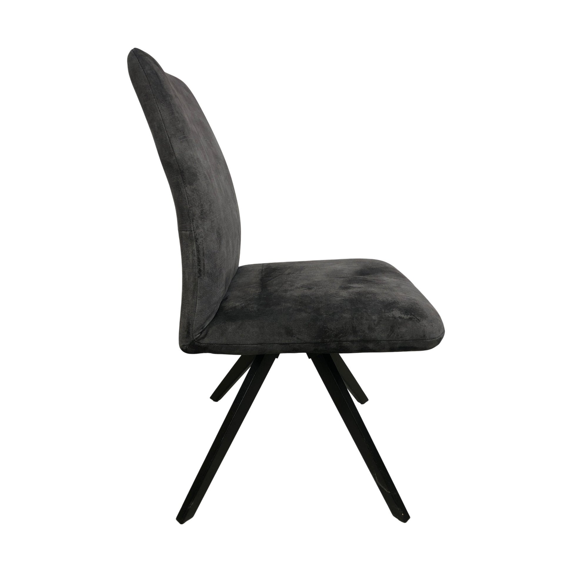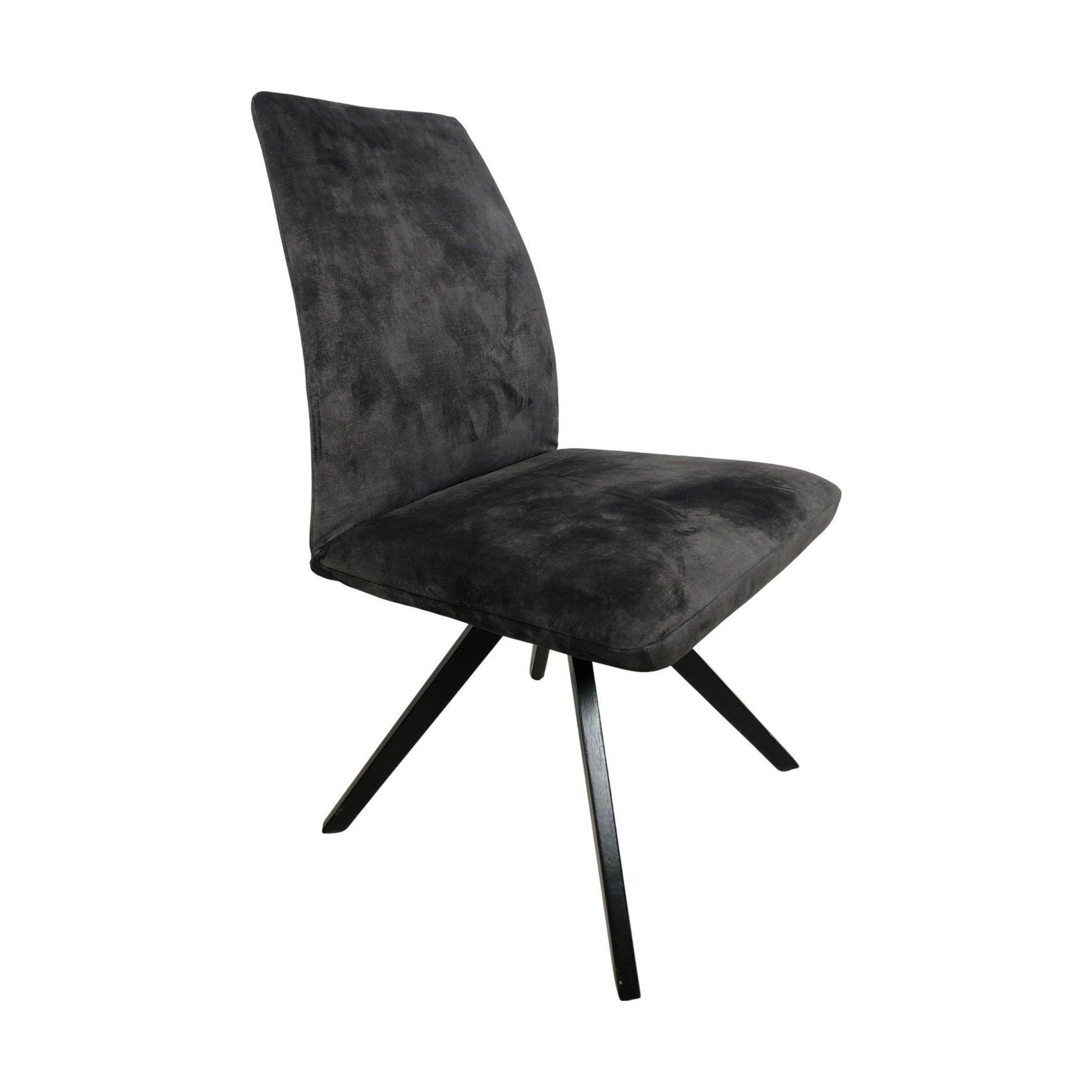 Hjort Knudsen spisestol med grå velur på setet og sortmalte treben med svingfunksjon. Stolen har en moderne design som gjør den passende til både spisebord og kontormiljøer.