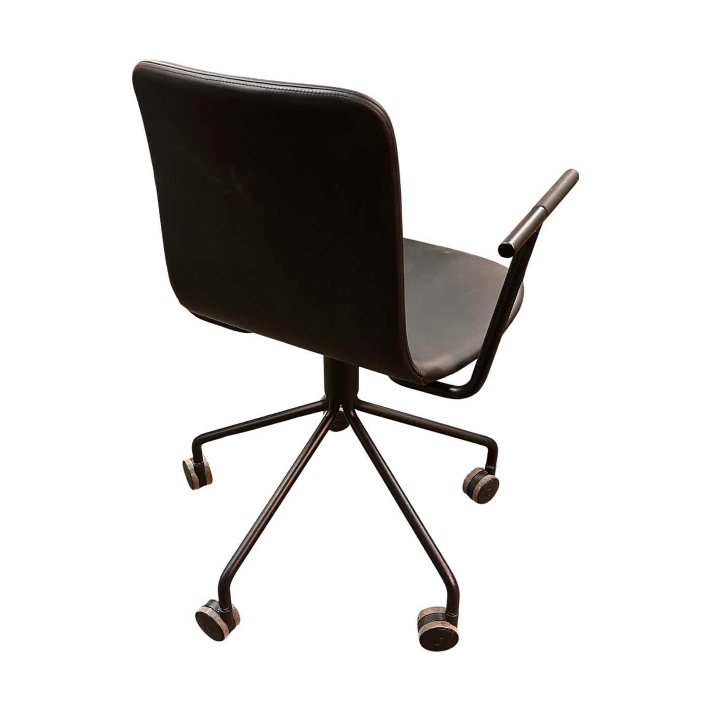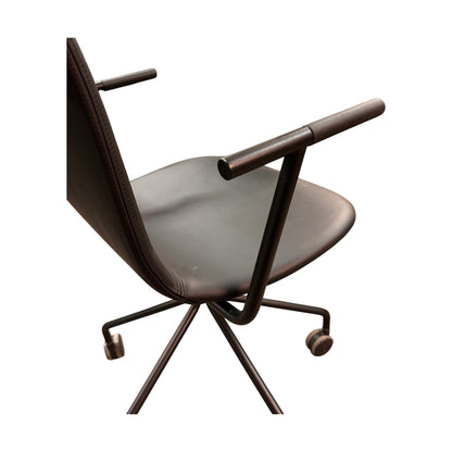 Stolen er i utmerket stand uten synlige bruksmerker. Skinnet er pent bevart og gir en luksuriøs følelse. Alle hjul fungerer som de skal, og stolen gir en behagelig sitteopplevelse.