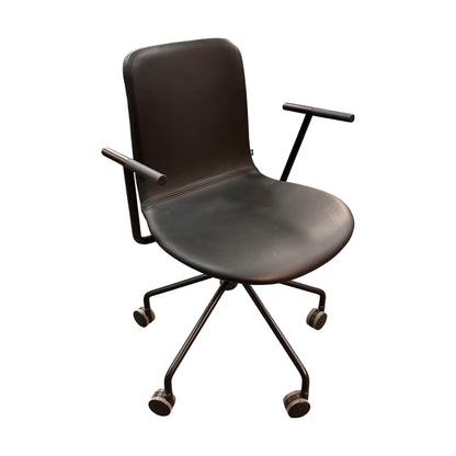 Stilren og praktisk skinnstol fra Horreds. Denne helsorte stolen på hjul kommer med armlener som gir økt komfort og støtte i lange arbeidsøkter. Stolen har et moderne uttrykk og passer godt inn i både hjemmekontoret og det profesjonelle arbeidsmiljøet.