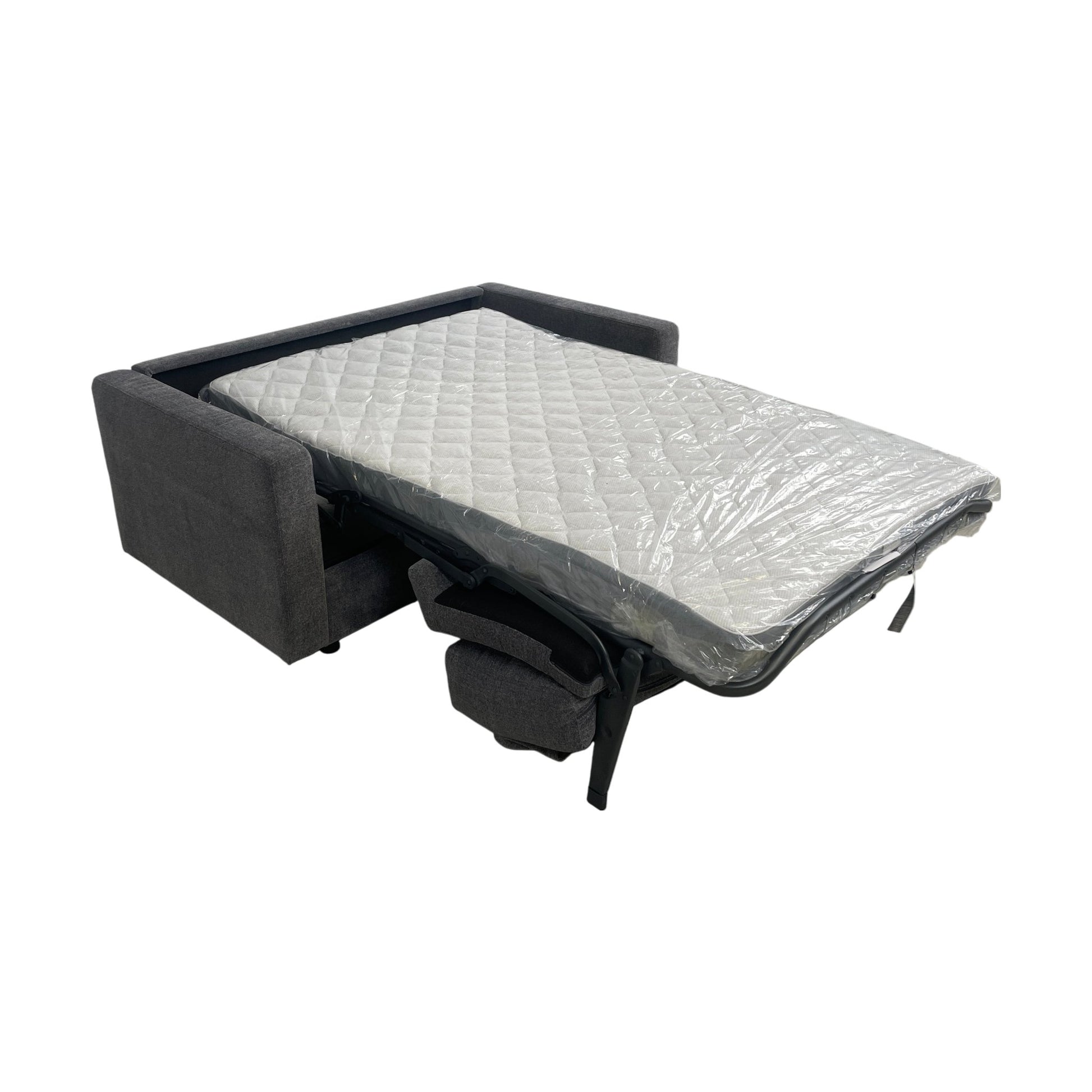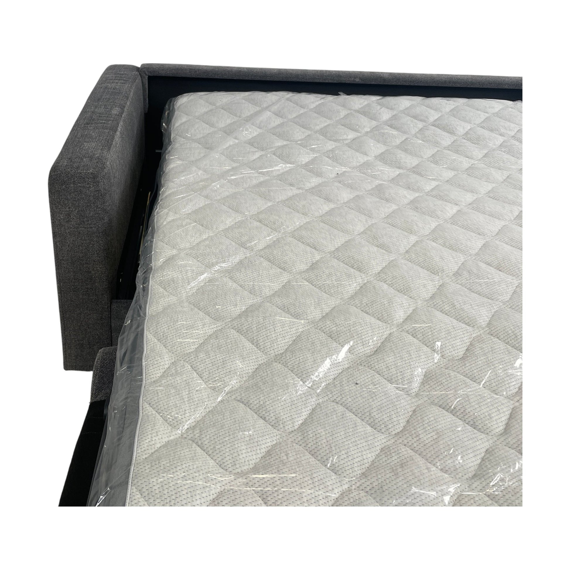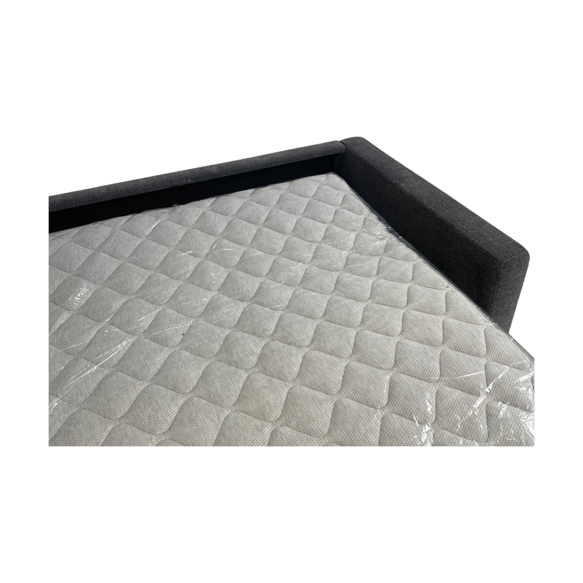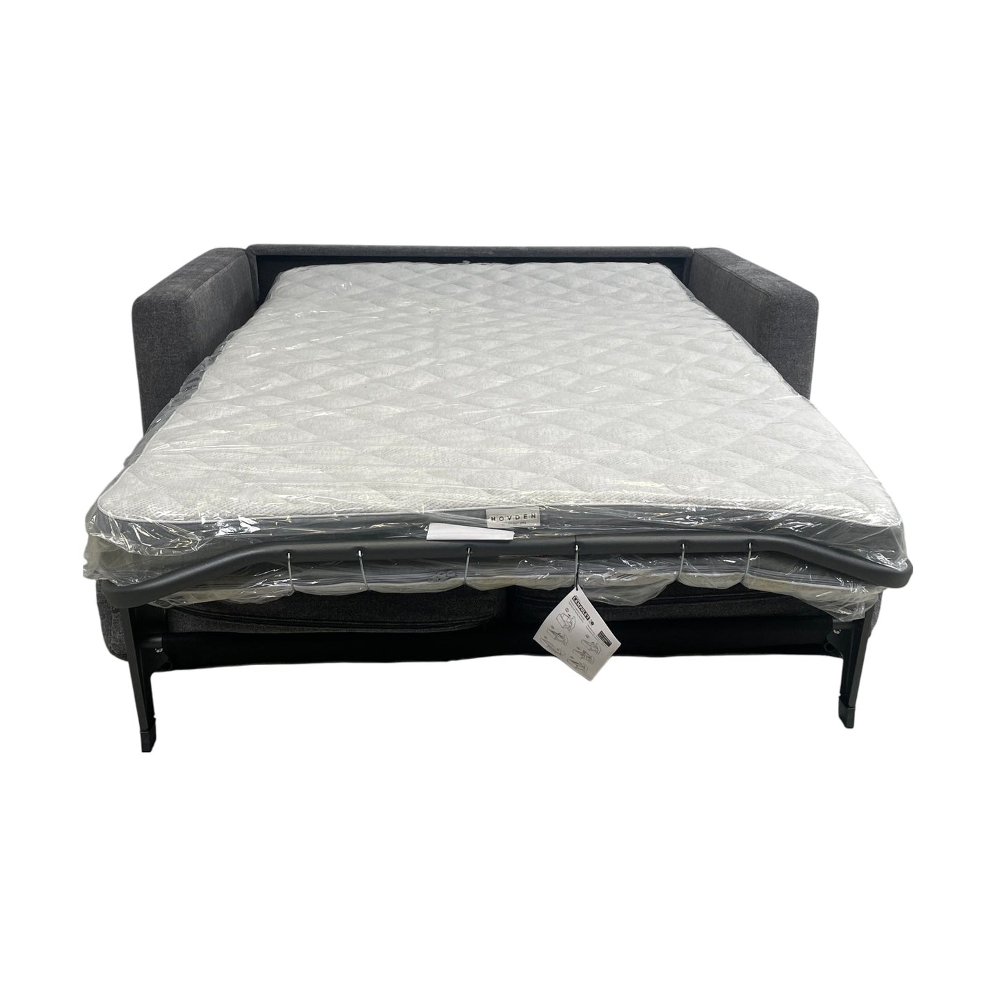 Sovesofaen har fortsatt plastbeskyttelse på madrassen. Det er ingen merker eller skader, så du kan nyte en som ny opplevelse.