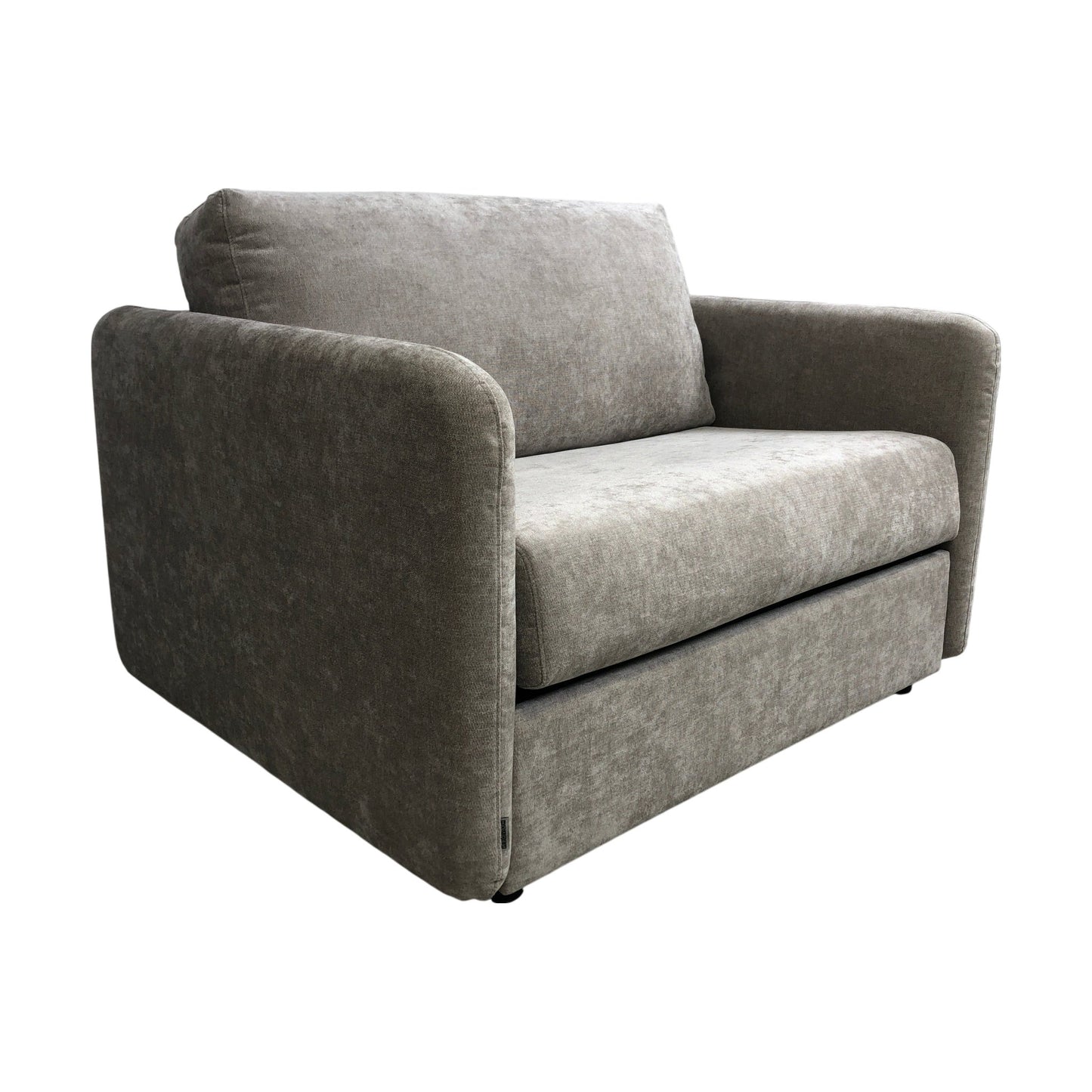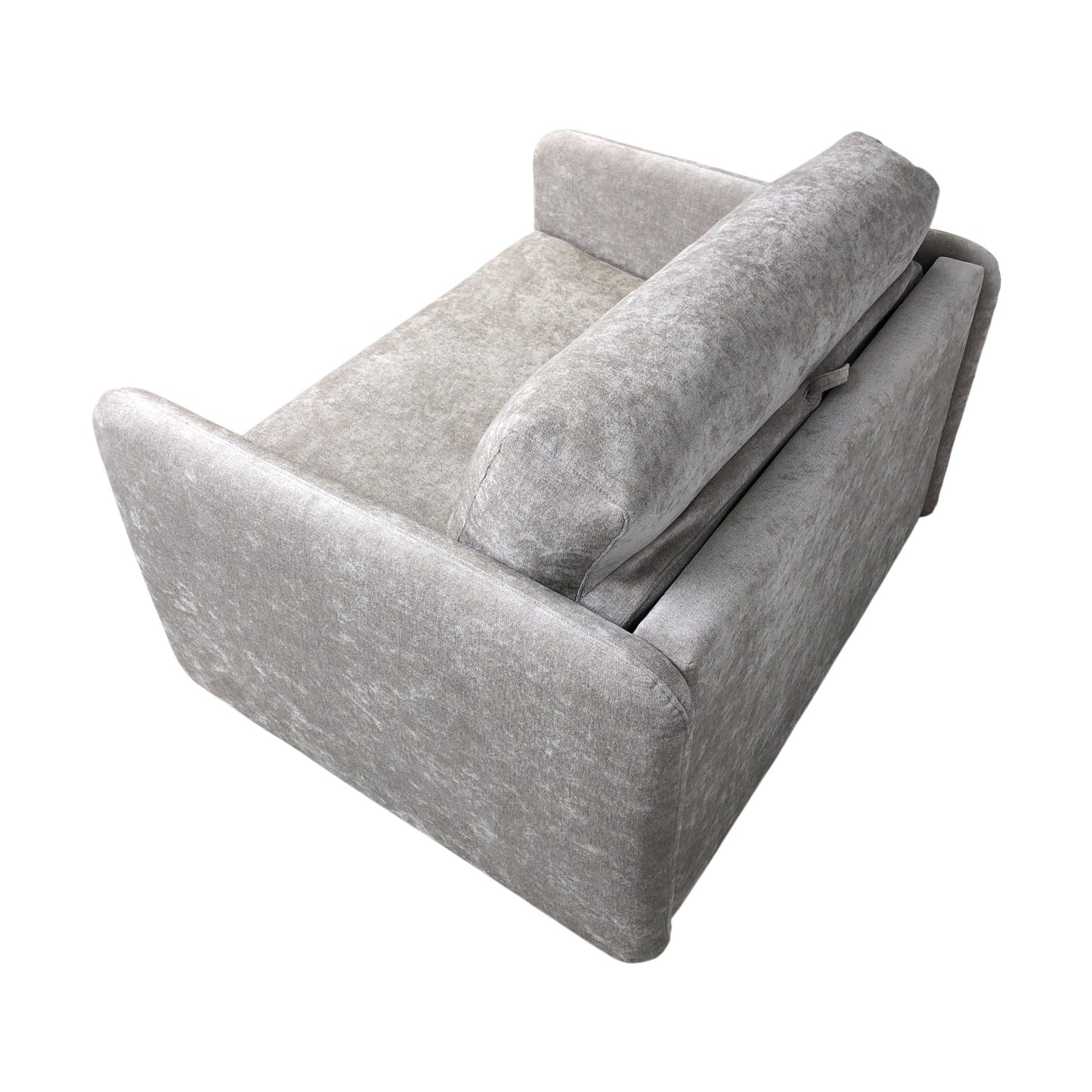 Sovesofaen er helt ny. Den gir et stilrent uttrykk og vil være et praktisk tillegg til stuen eller gjesterommet, ideell for både sitte- og sovebruk.
