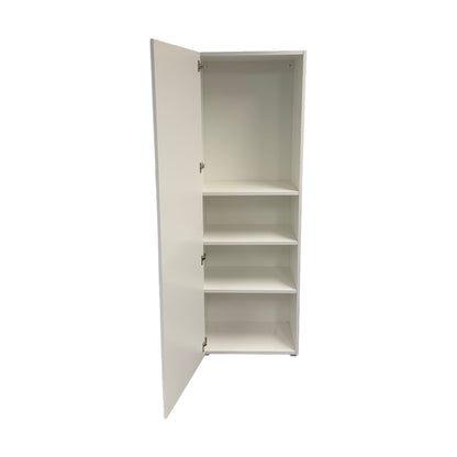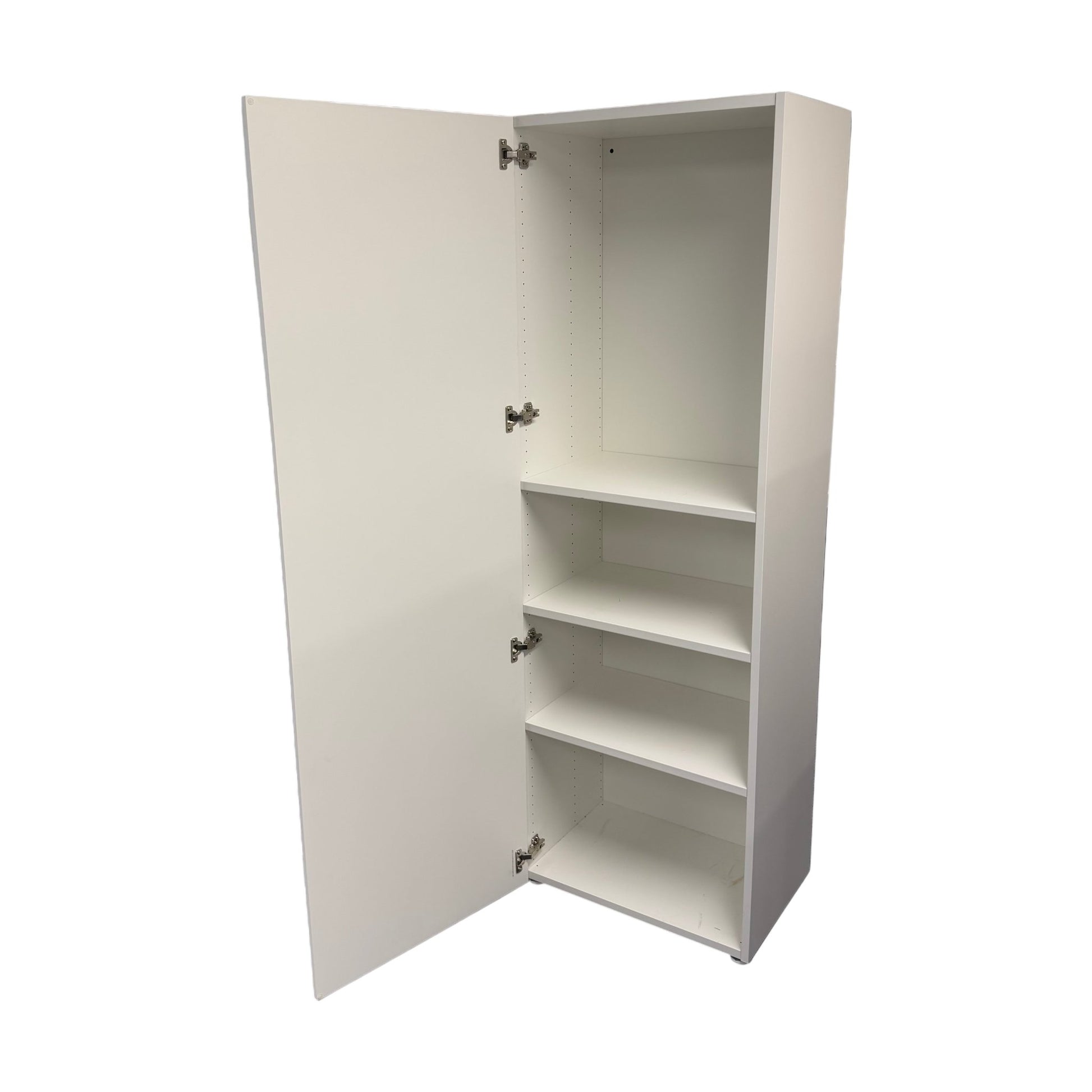 Nett og plassbesparende høyt skap, designet for å optimalisere lagringsmuligheter. Skapet har justerbare hyller som gir fleksibilitet til å tilpasse oppbevaringsplassen etter behov. Den enkle, hvite fasaden sørger for et stilrent utseende, som passer inn i ulike kontormiljøer eller hjem.