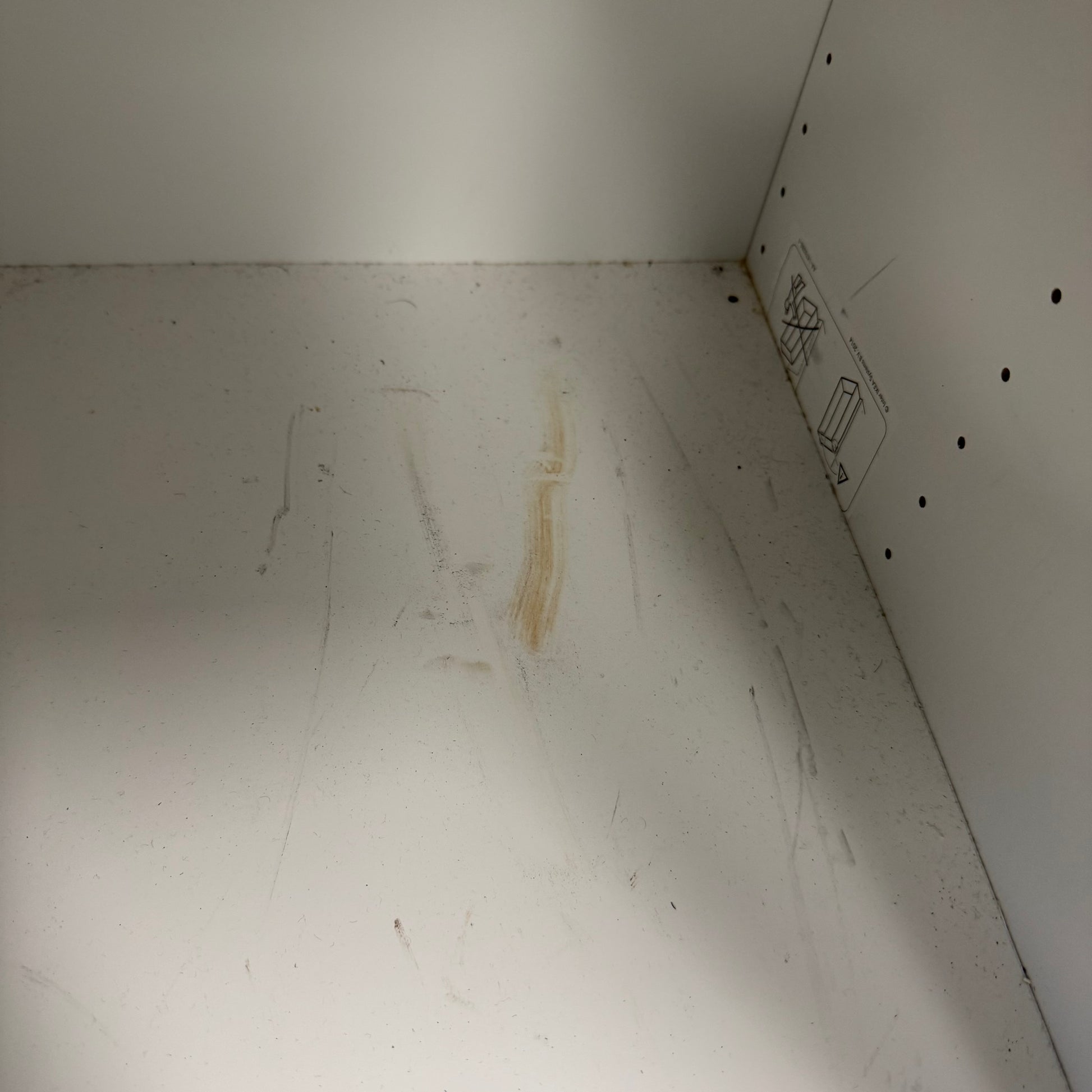 Skapet er i god stand, men har bruksslitasje på innsiden. Fasaden er i meget god stand, mens hyllene kan bære preg av tidligere bruk. Dette gjør skapet til et funksjonelt valg for den som ønsker ekstra lagringsplass uten å måtte investere dyre møbler.