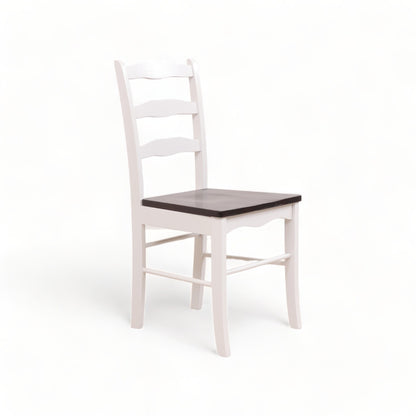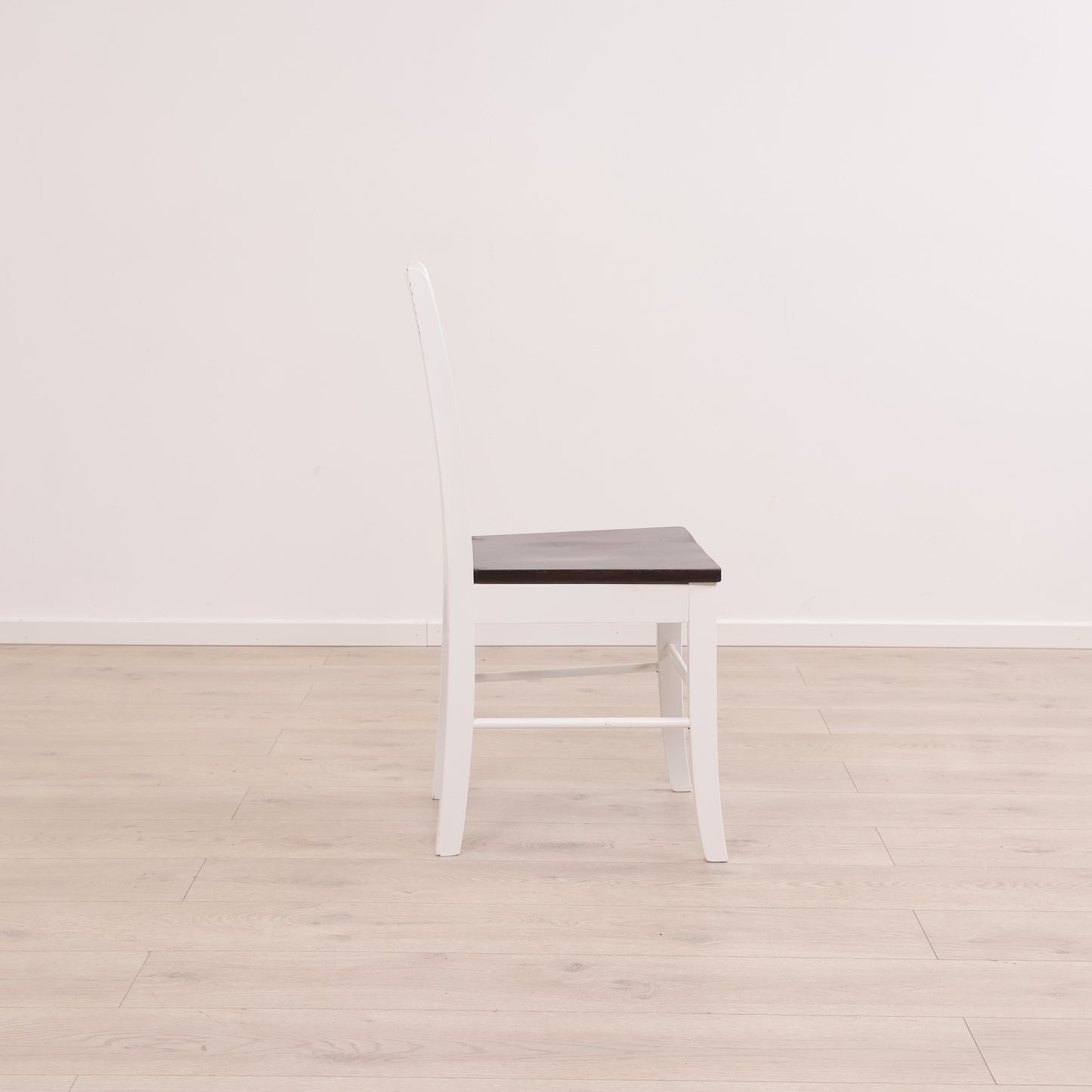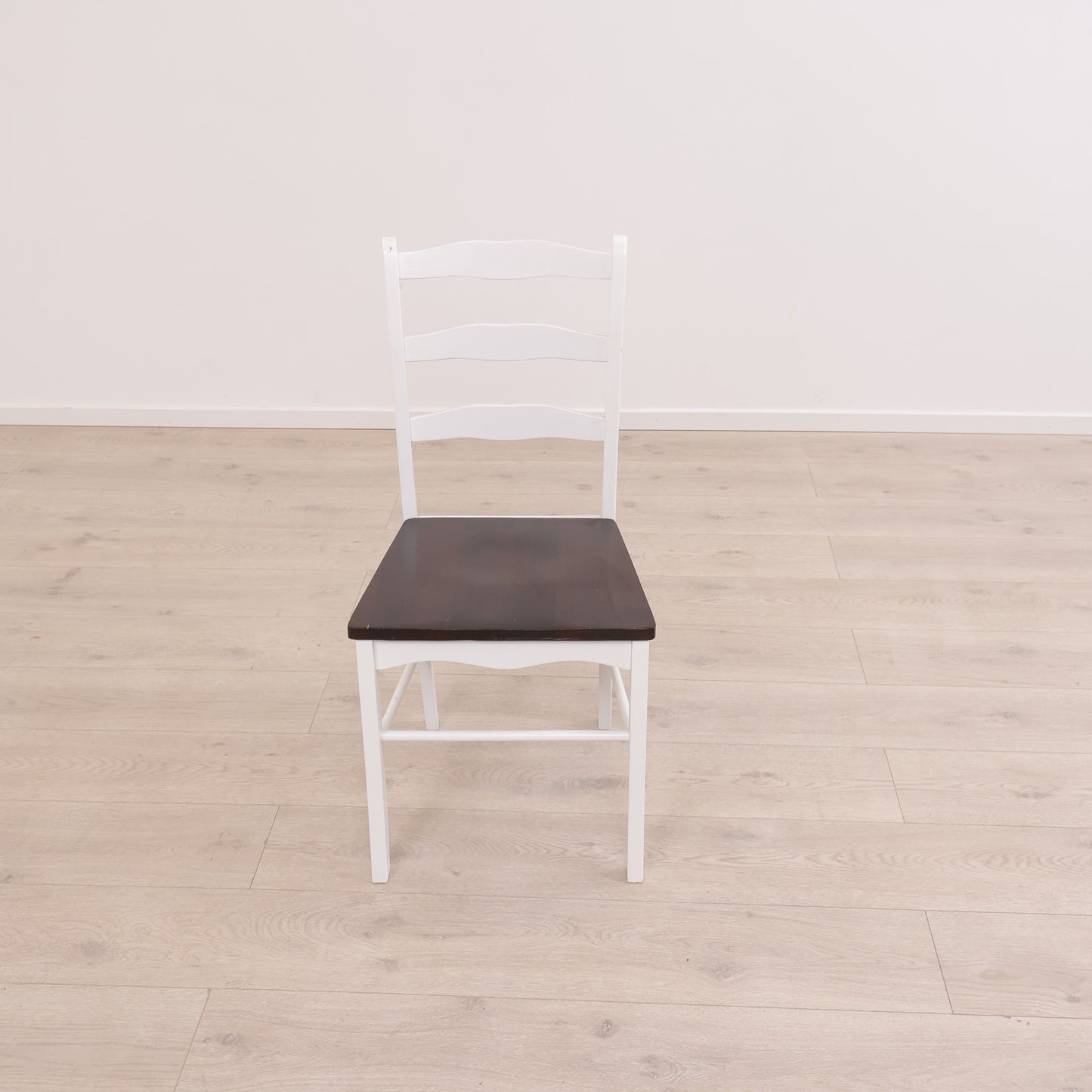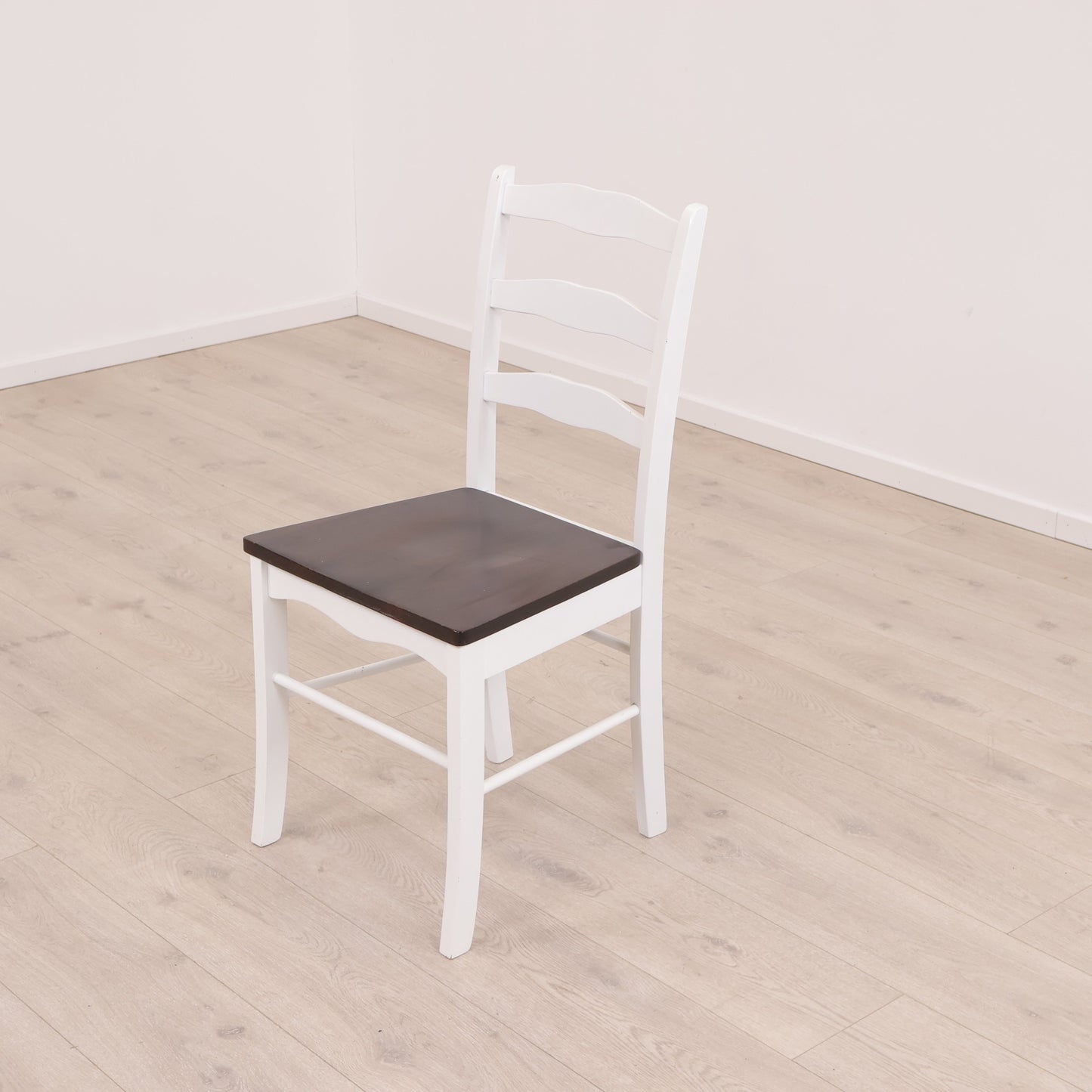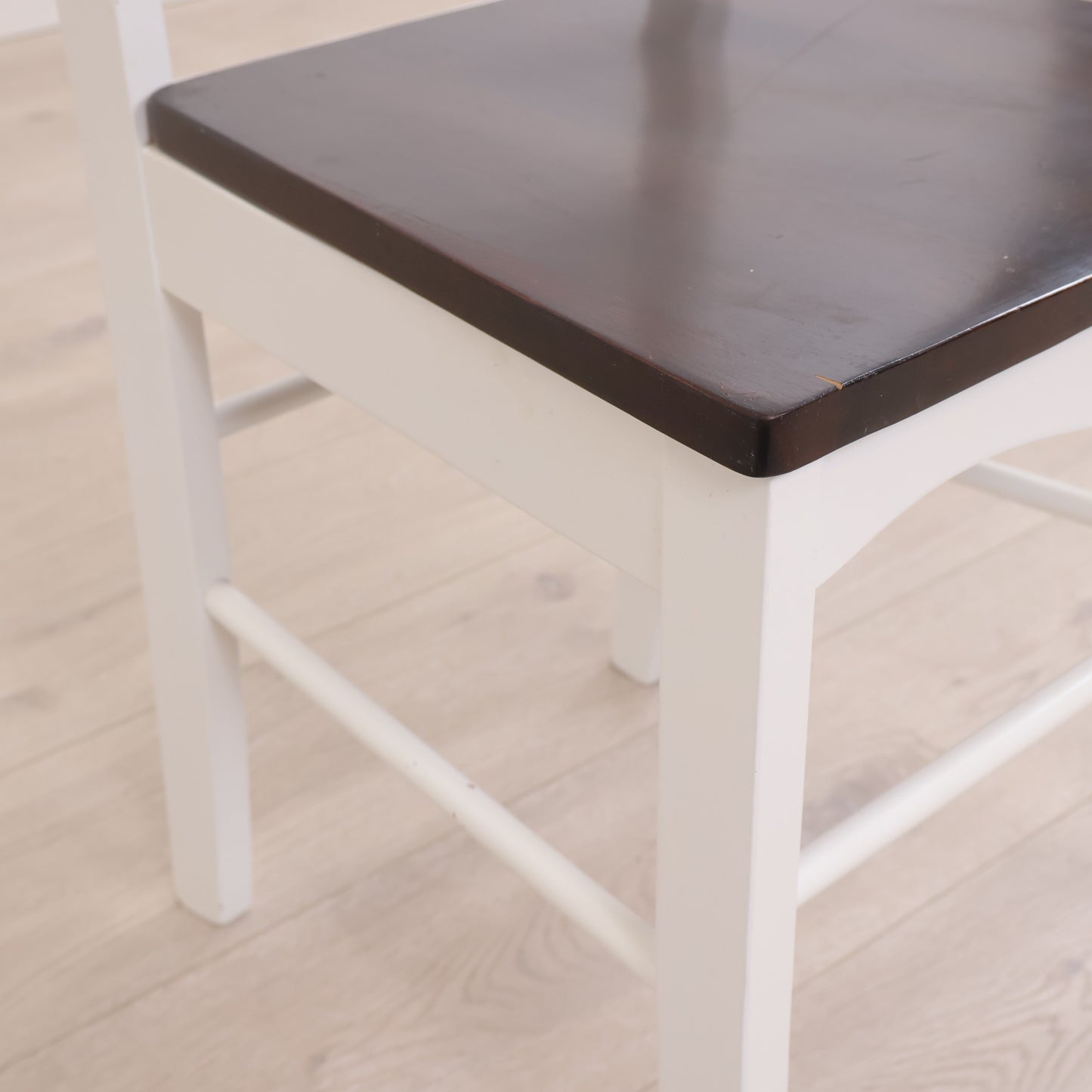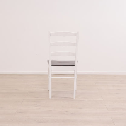 Hvit spisestol med brunt sete