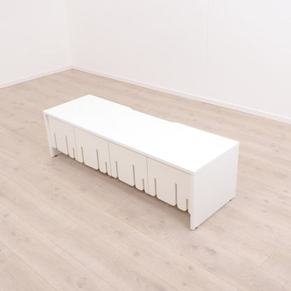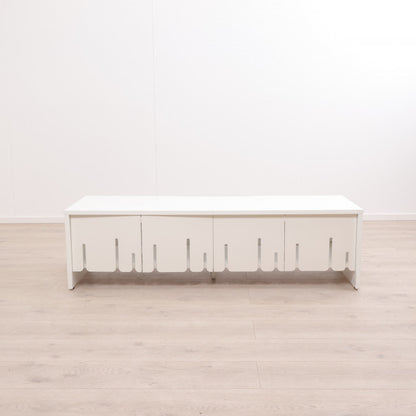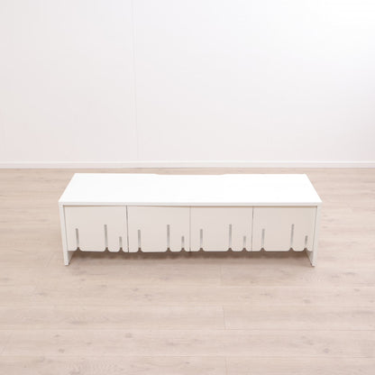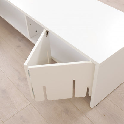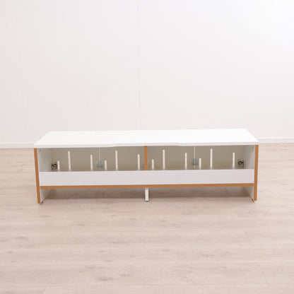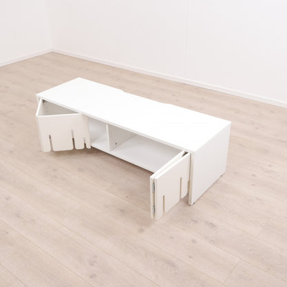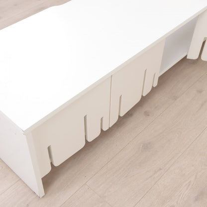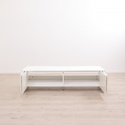 Hvit TV-benk med skyvedører i front