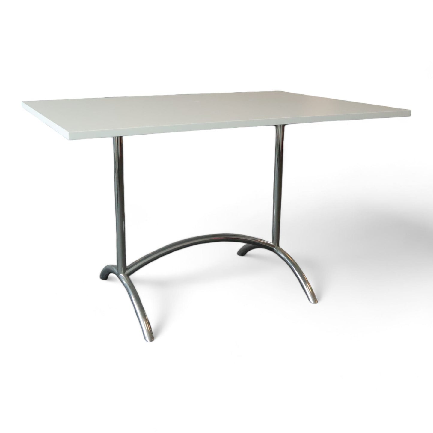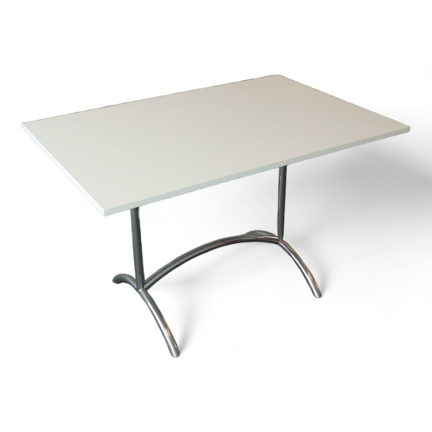 Bordet har noen lite synlige riper eller merker, men er ellers i god stand. Det solide designet gir både funksjonalitet og stil.