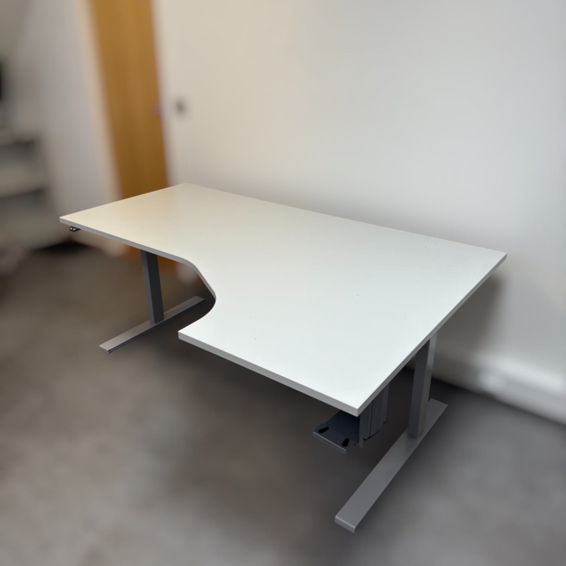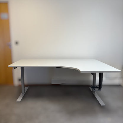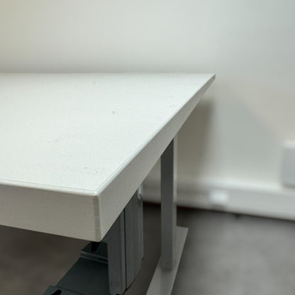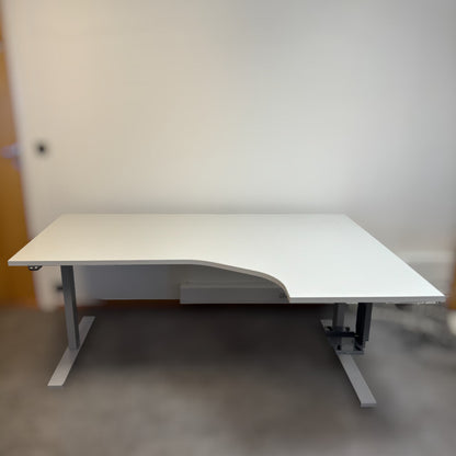 Hvitt elektriske hev/senk skrivebord med høyresving fra LINAK