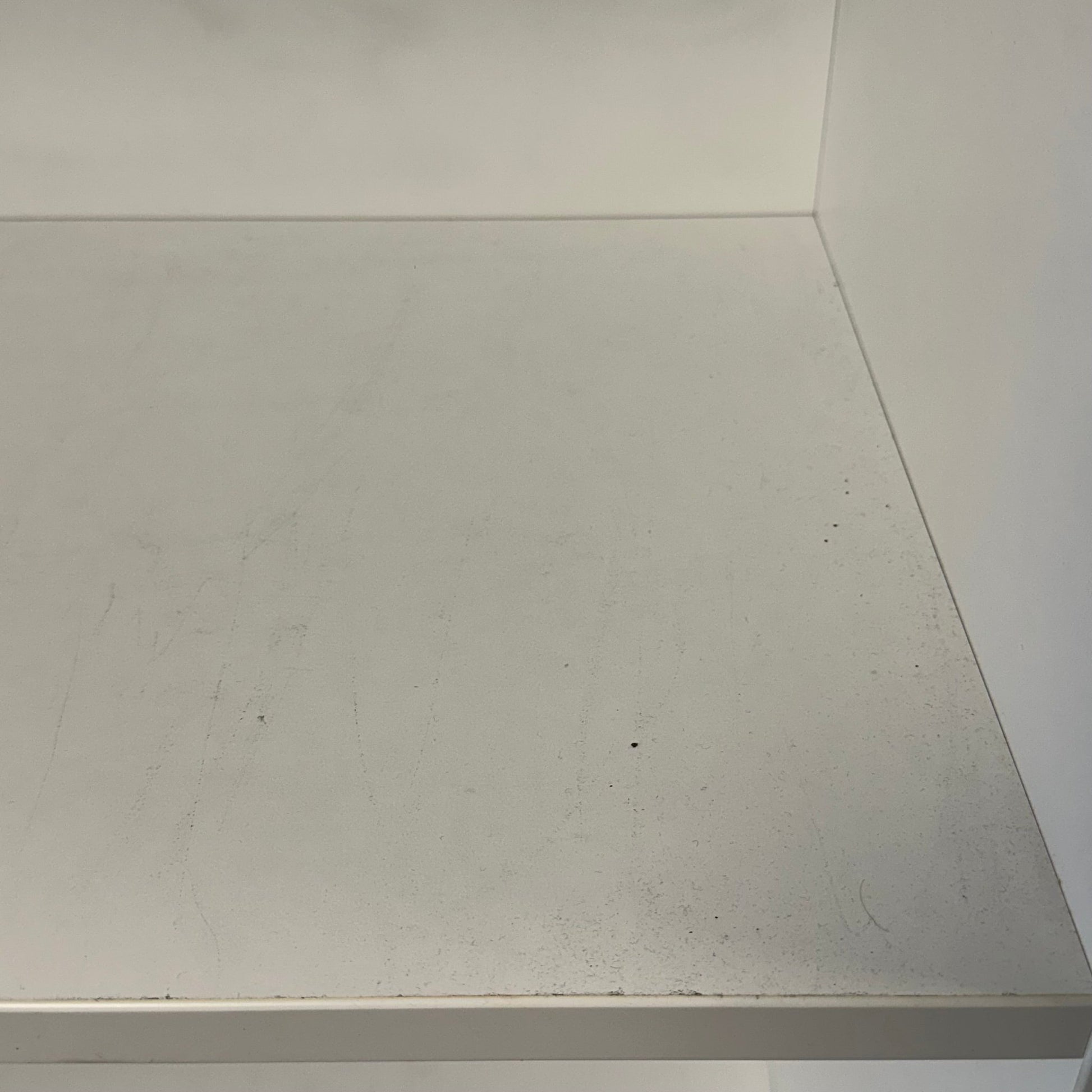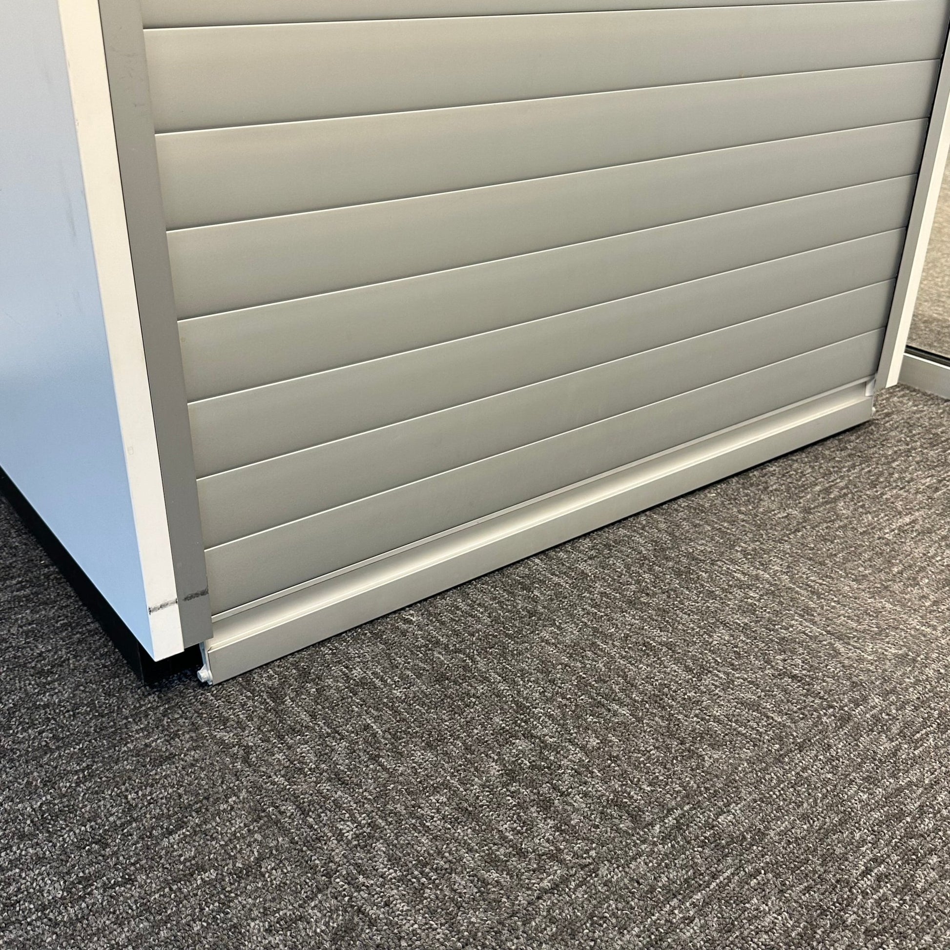 Hyllen er i god stand med minimale bruksmerker og fungerer perfekt til kontoroppbevaring. Kodelåsen på skapet er ikke nullstilt, og man kan derfor ikke benytte låsefunksjonen.