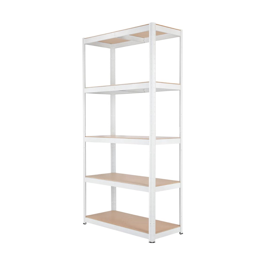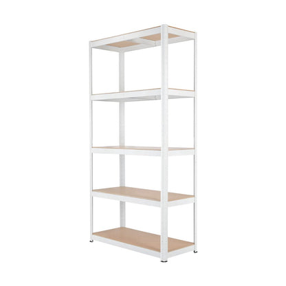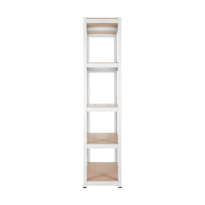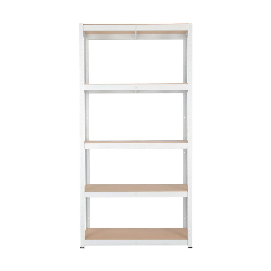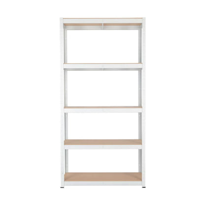 Praktisk hylle i metall fra Clas Ohlson med 5 hylleplater, ideell for garasje eller bod. Denne hyllen gir fremragende oppbevaringsmuligheter og er perfekt for organisering av verktøy og utstyr.