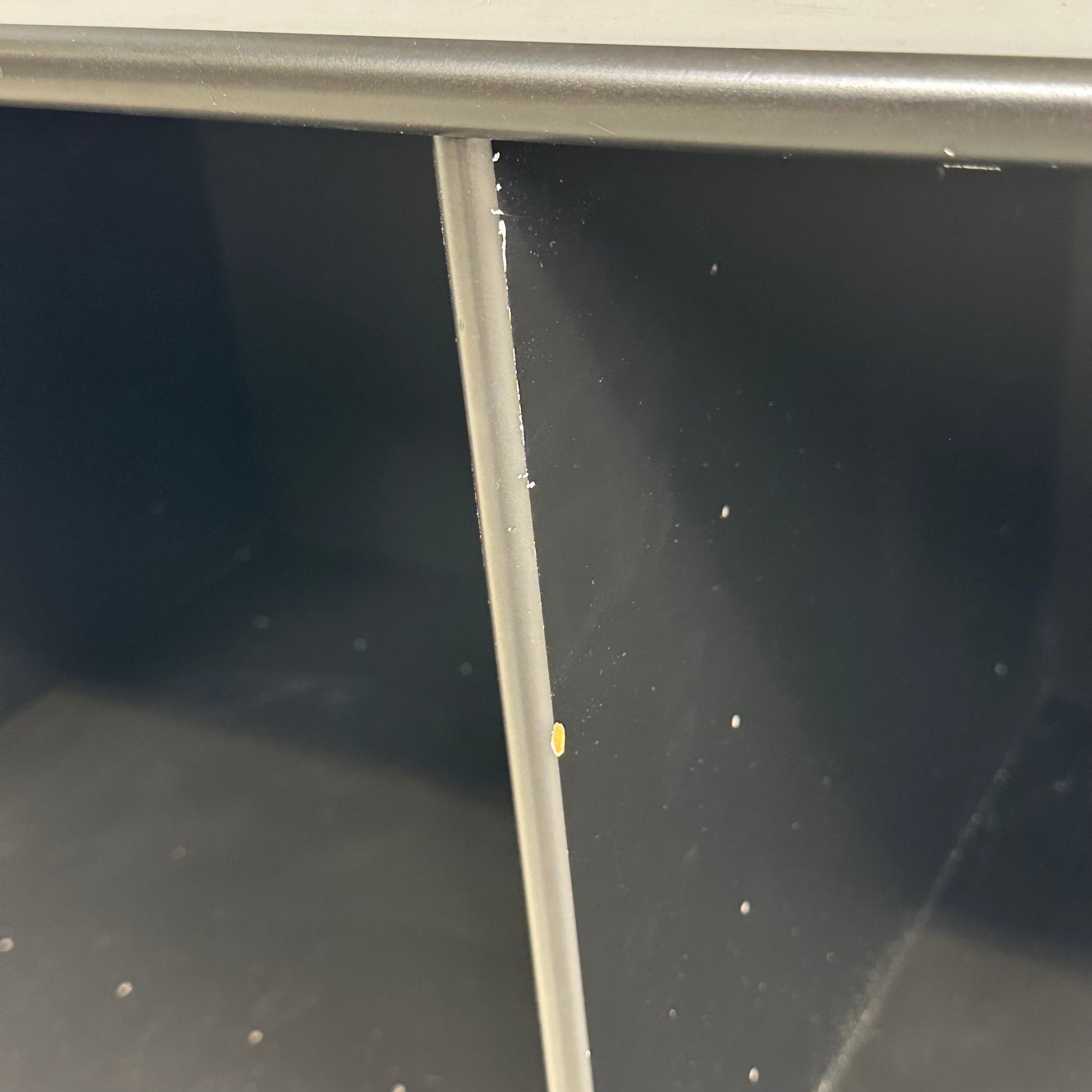 Hylleseksjonen er godt brukt og har en del merker og skader, men dette påvirker ikke bruken. Merker er synlige på de fleste overflater, men helhetsinntrykket er fortsatt godt.