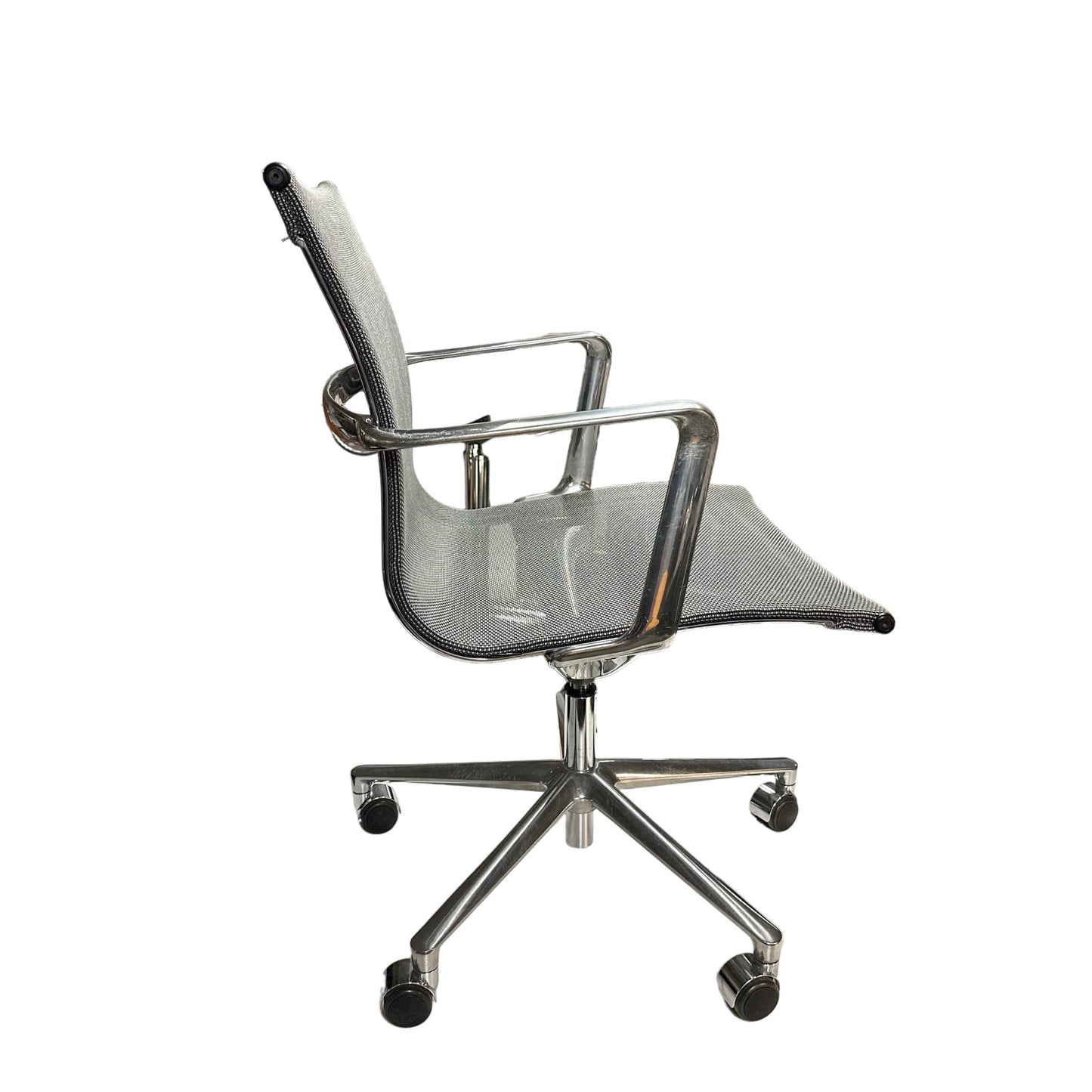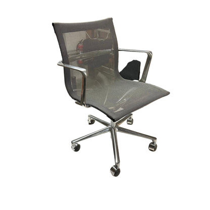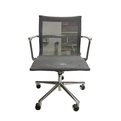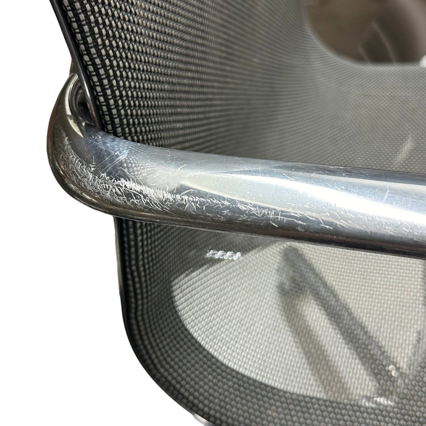 Møteromsstol fra ICF i funksjonelt grå mesh, perfekt for kontor eller møterom. Den er lett å flytte rundt og gir et praktisk alternativ for fleksible arbeidsmiljøer.