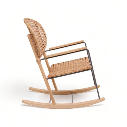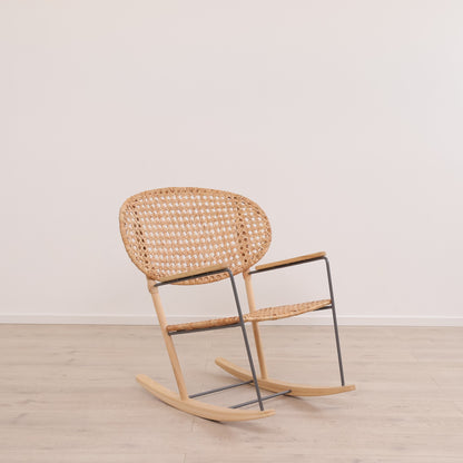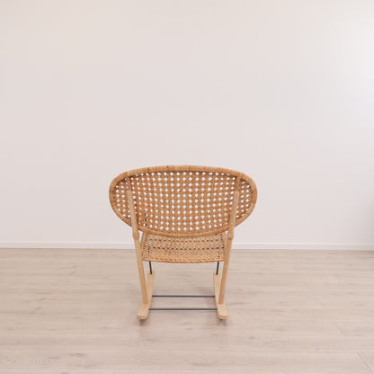 Grönadal gyngestol fra IKEA i rotting. Grönadal-gyngestolene fra IKEA er håndvevd i rotting og har et unikt men likevel hjemmekjært design. Ryggen har en karakteristisk ovalform, støttet opp av et understell av tre og stål, som gjør stolen til et stilig fokuspunkt i rommet. Rottingen i sitteflaten skaper en fast sitteflate som gjerne kan dekkes med et pledd eller en pute. Gyngestolen er i utmerket tilstand uten synlig bruksslitasje.