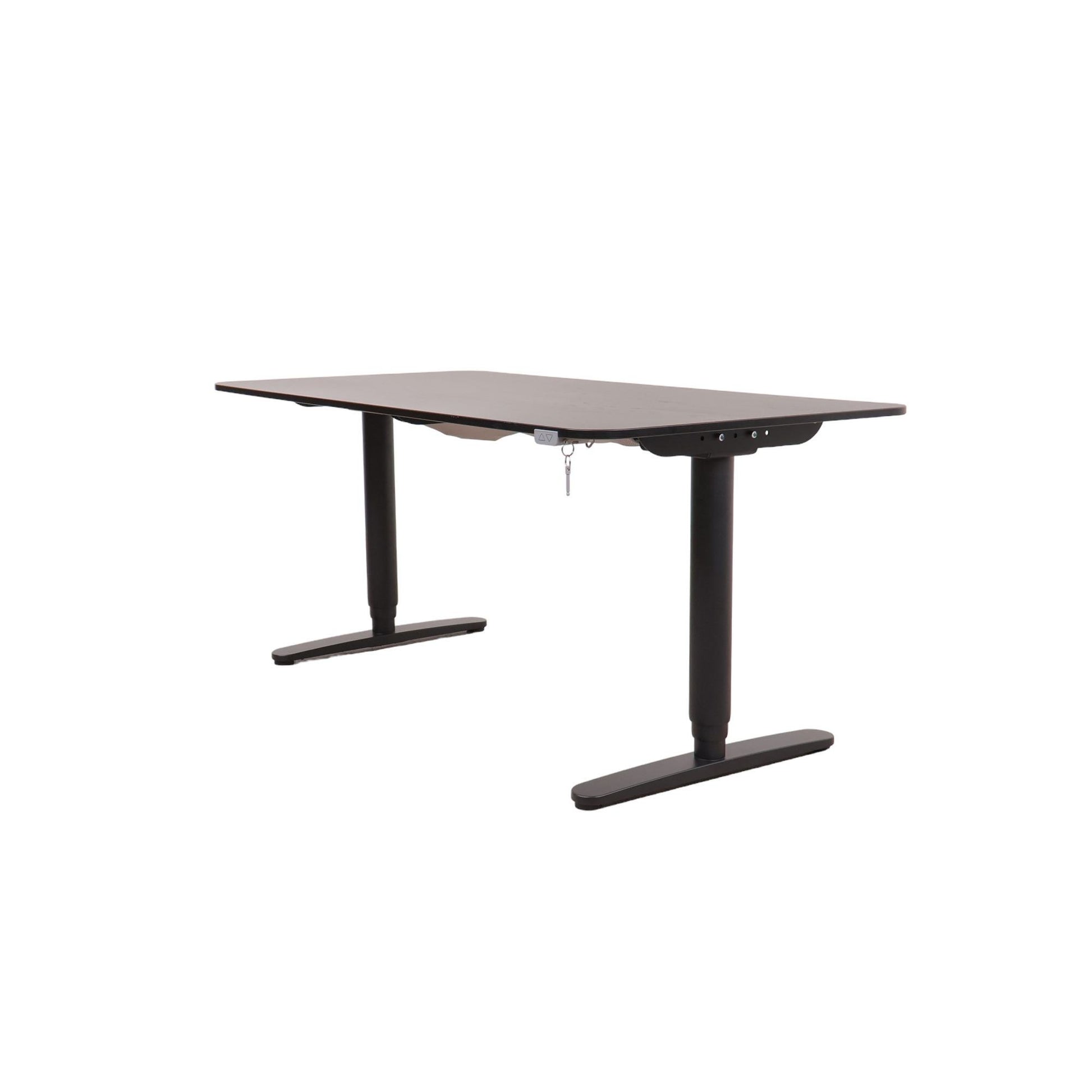 Elektrisk hev/senk Bekant skrivebord med en stilren svart bordplate i laminat og kraftig pulverlakkert stålramme. Dette skrivebordet gir deg muligheten til å justere høyden mellom 65 cm og 115 cm, perfekt for både sittende og stående arbeid. Den generøse størrelsen på 160x80 cm gir god plass til kontorutstyr og kan tilpasses dine arbeidsbehov.