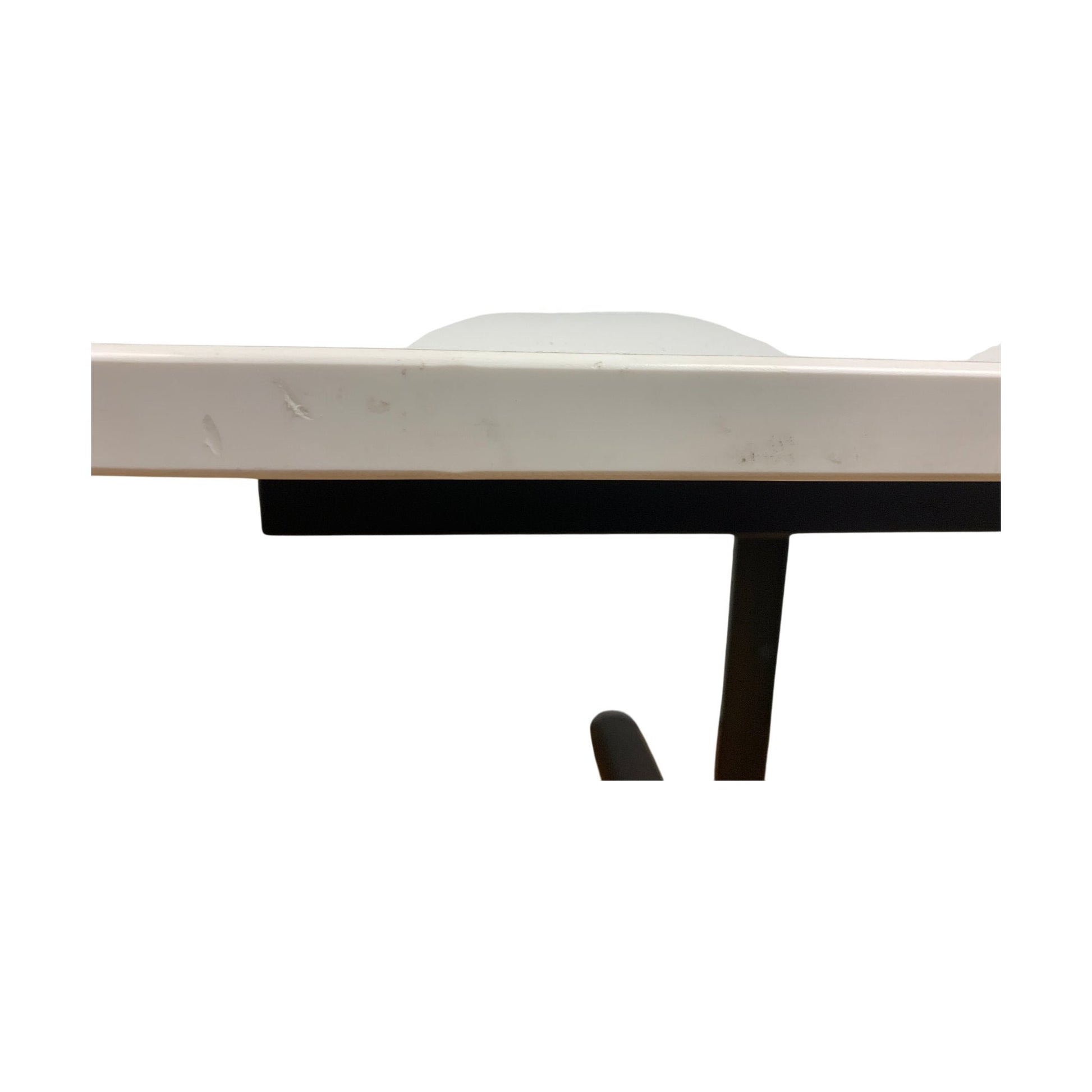 Praktisk og stilrent skrivebord fra IKEA Bekant-serien, designet med høyresving for optimal utnyttelse av kontorplassen. Den rene hvite overflaten med sorte ben gir et moderne preg, og skrivebordet er ideelt for både hjemmekontor og arbeidsplasser. Solid konstruksjon og romslig bordflate gjør det enkelt å holde orden på arbeidsredskaper.