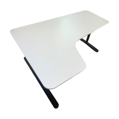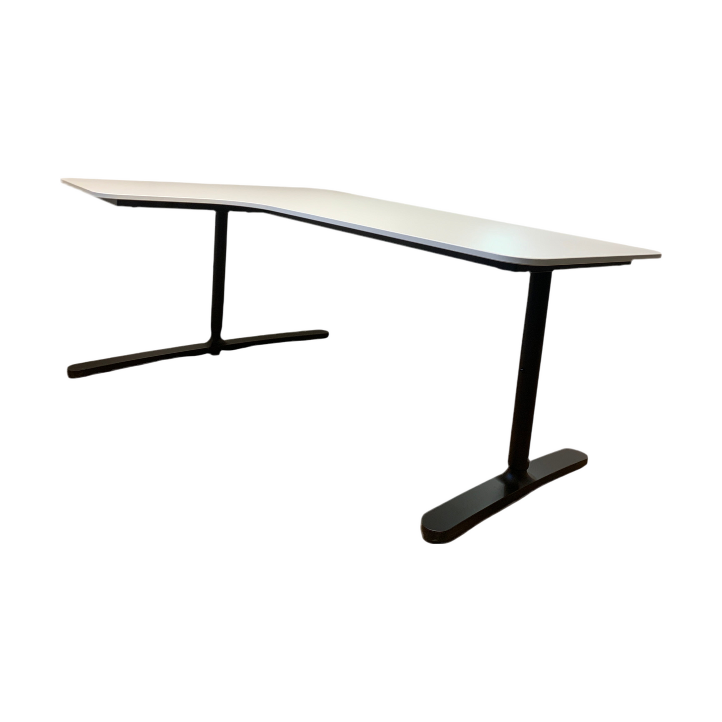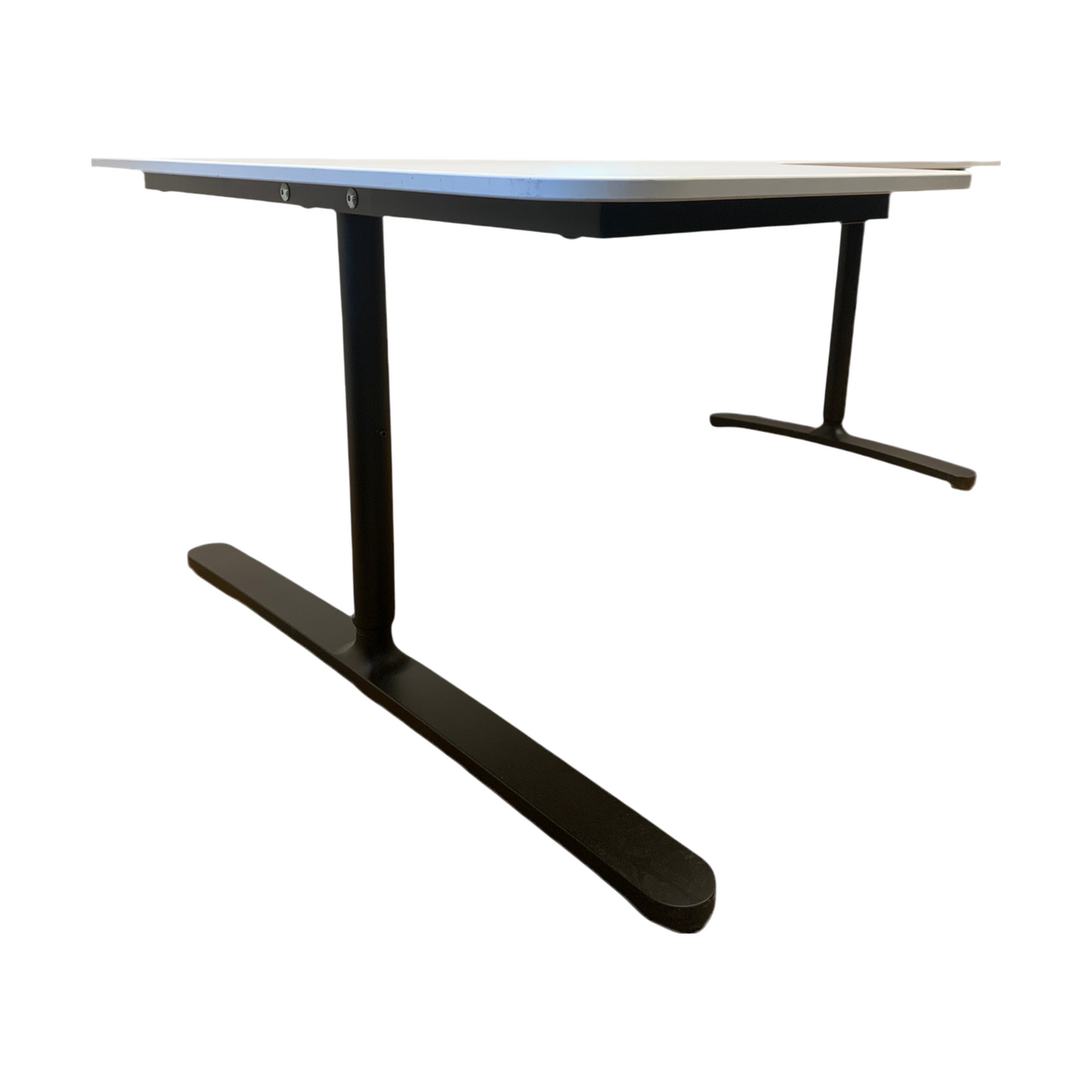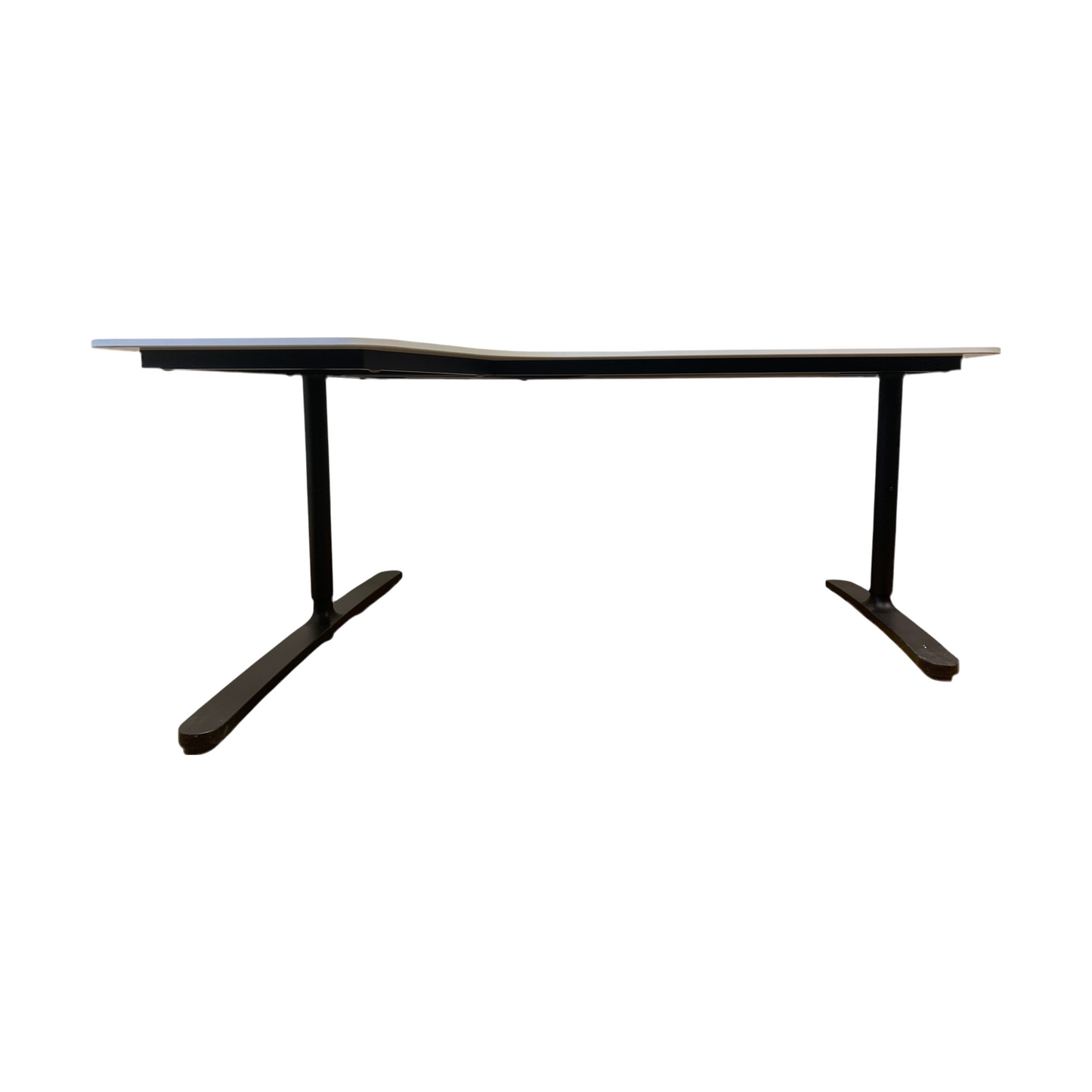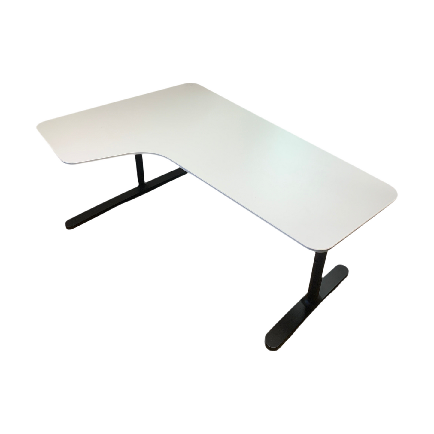 Praktisk og stilrent skrivebord fra IKEA Bekant-serien, designet med venstresving for optimal utnyttelse av kontorplassen. Den rene hvite overflaten med sorte ben gir et moderne preg, og skrivebordet er ideelt for både hjemmekontor og arbeidsplasser. Solid konstruksjon og romslig bordflate gjør det enkelt å holde orden på arbeidsredskaper.