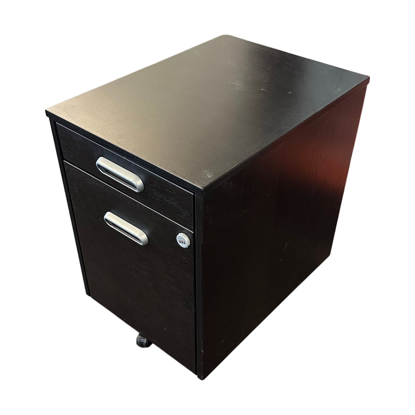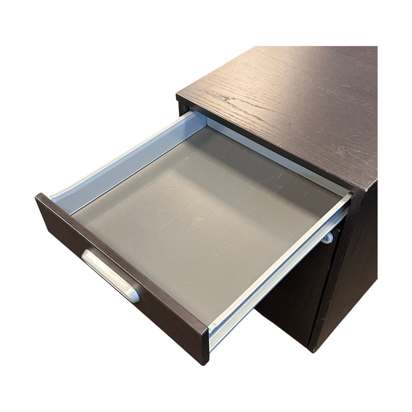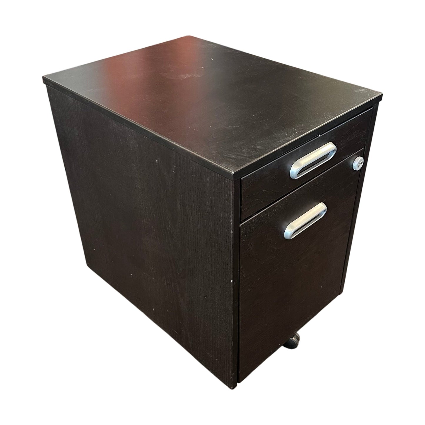 Arkivskap fra IKEA i robust brun treverk, utstyrt med hjul for enkel mobilitet. Dette praktiske skapet har to skuffer, som gir god lagringsplass til dokumenter og kontorrekvisita. Designet er elegant og tidløst, noe som gjør det til et ypperlig valg for både hjemmekontor og profesjonelle kontormiljøer.
