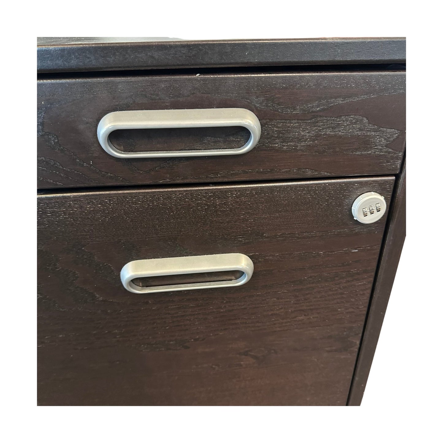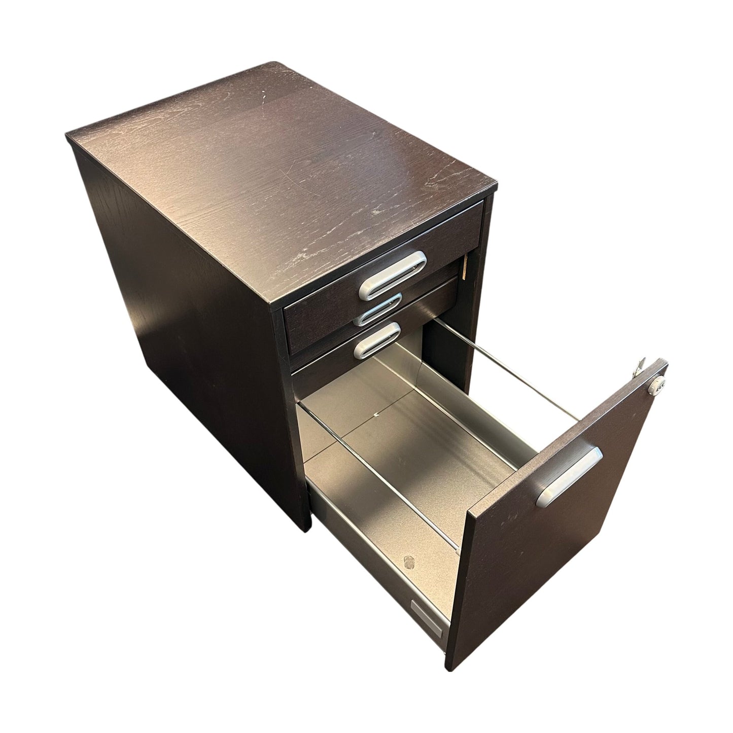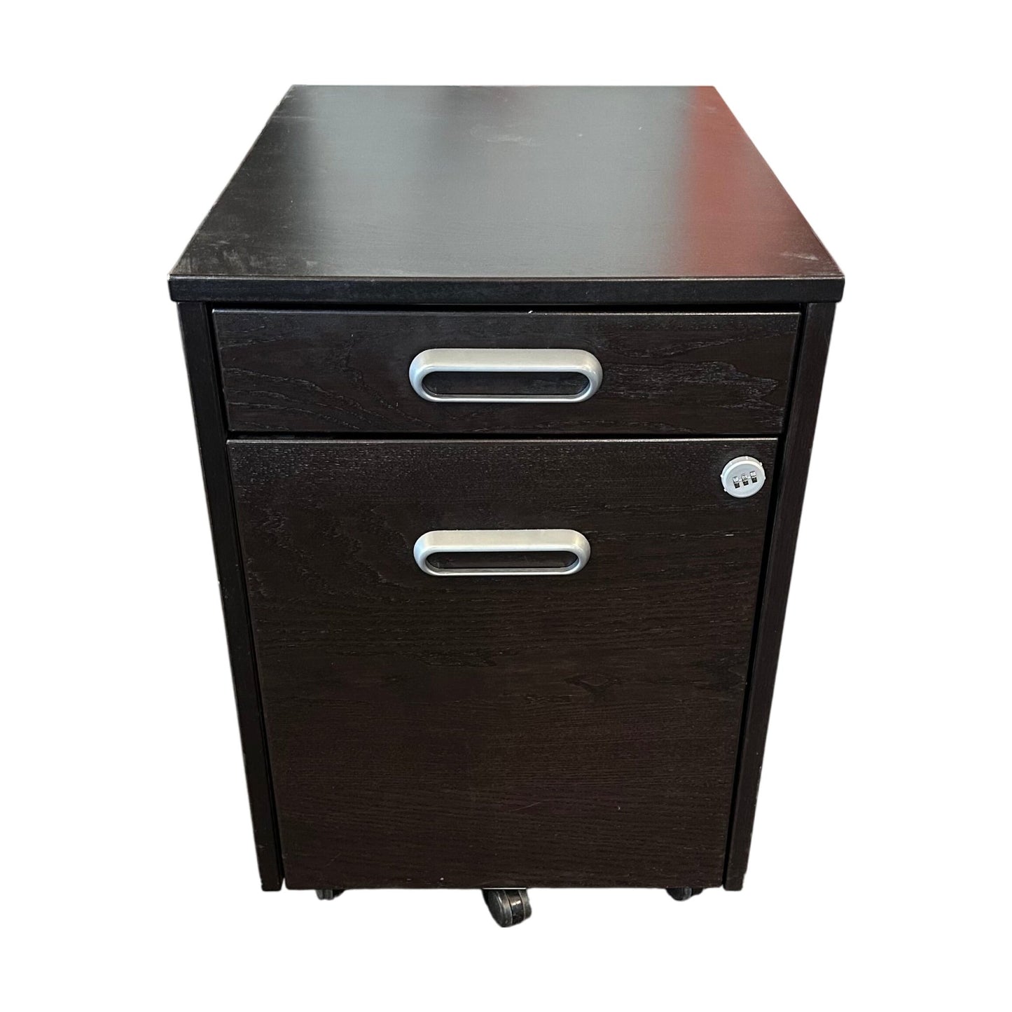 Arkivskap fra IKEA i robust brun treverk, utstyrt med hjul for enkel mobilitet. Dette praktiske skapet har to skuffer, som gir god lagringsplass til dokumenter og kontorrekvisita. Designet er elegant og tidløst, noe som gjør det til et ypperlig valg for både hjemmekontor og profesjonelle kontormiljøer.