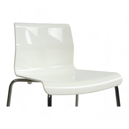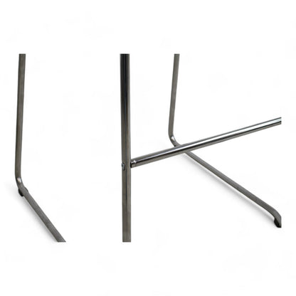 Stolen er i god stand, men viser lett slitasje på setet. Ben og ramme er i god stand og stolen er fortsatt solid og funksjonell.