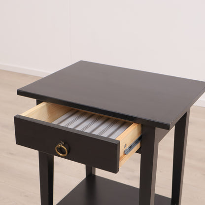 IKEA Hemnes brunsvart nattbord med skuff og hylleseksjon til oppbevaring