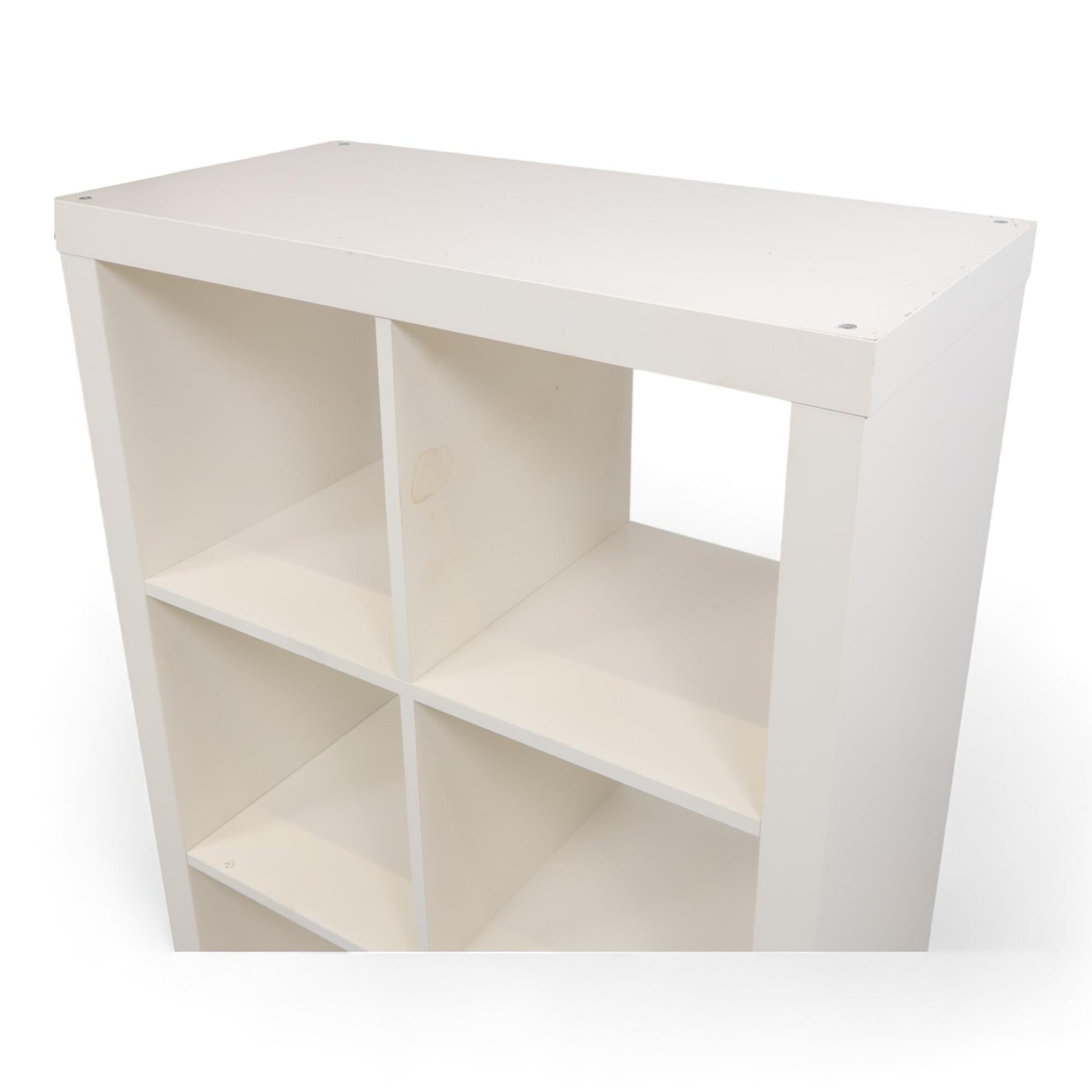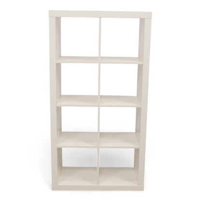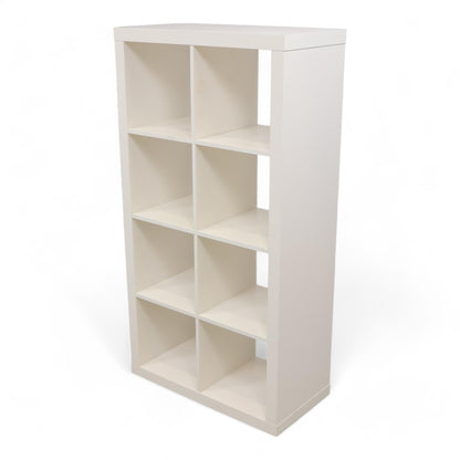 Praktisk hylle fra IKEA med 2x4 oppbevaringsplasser, perfekt for bøker, dekorasjoner eller oppbevaring. Den hvite fargen gjør den enkel å integrere i ulike rom og interiørstiler.