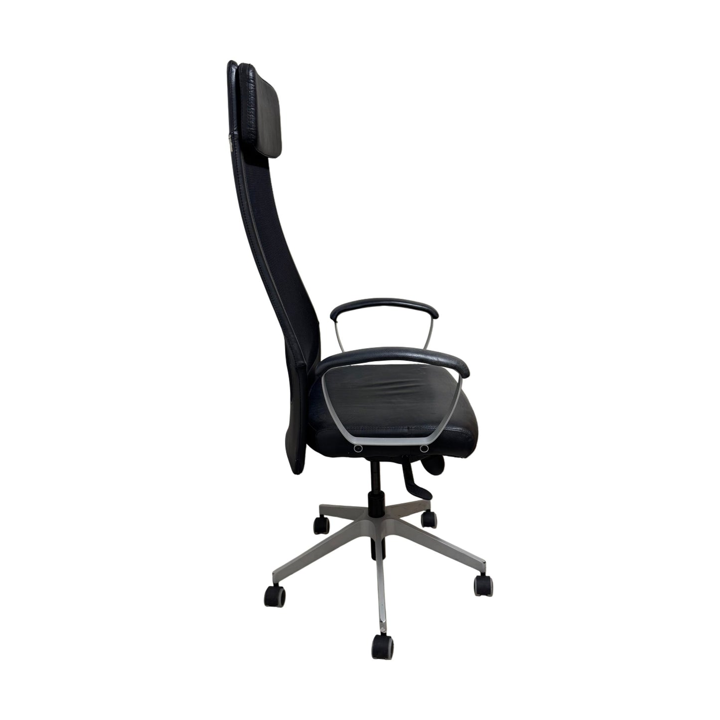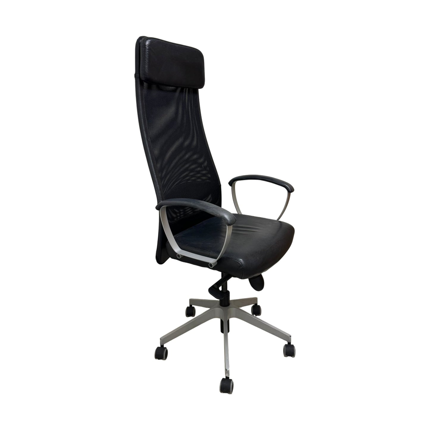 Kontorstol fra IKEAS populære Markus-serie i svart, designet for komfort og funksjonalitet. Denne stolen har et moderne uttrykk med et mesh-ryggdesign som gir god ventilasjon.