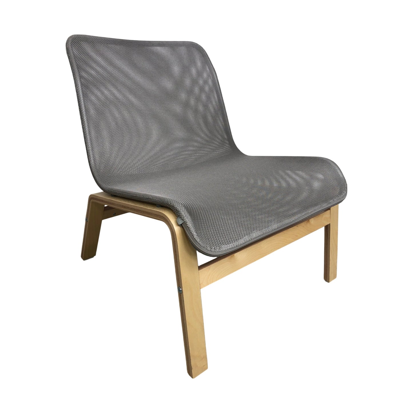 Nolmyra lenestol fra IKEA er en stilren og moderne stol med et minimalistisk design. Den lysegrå mesh-stoffet gir god sittekomfort og et lett uttrykk, mens benene i lyst treverk gir en naturlig og varm kontrast.