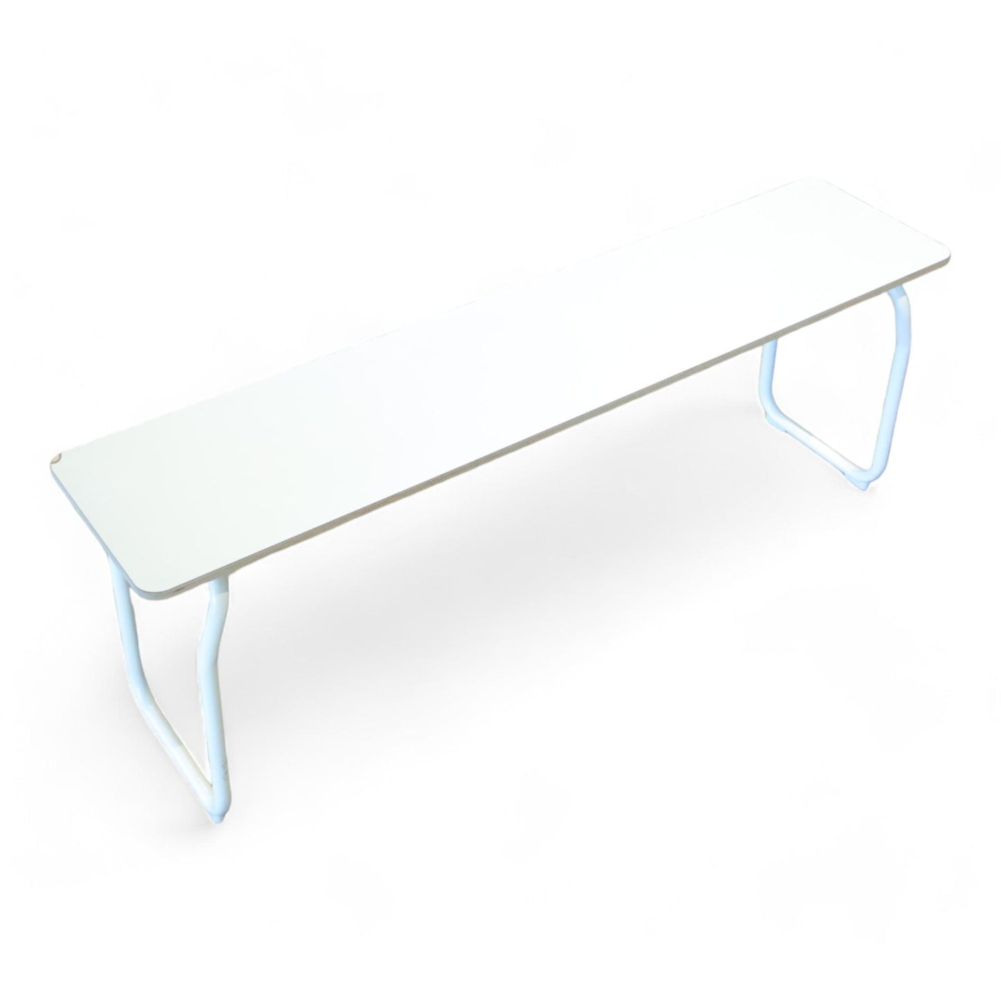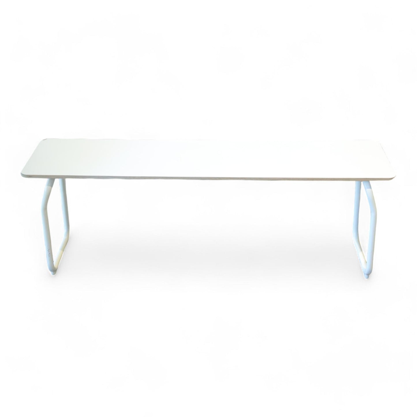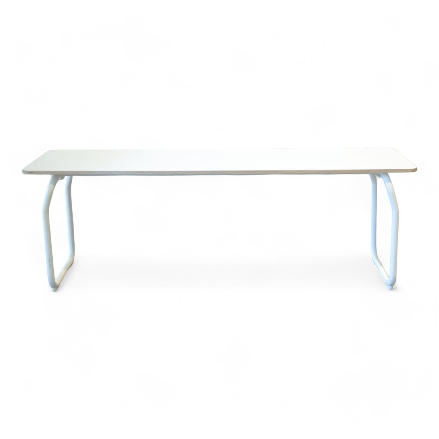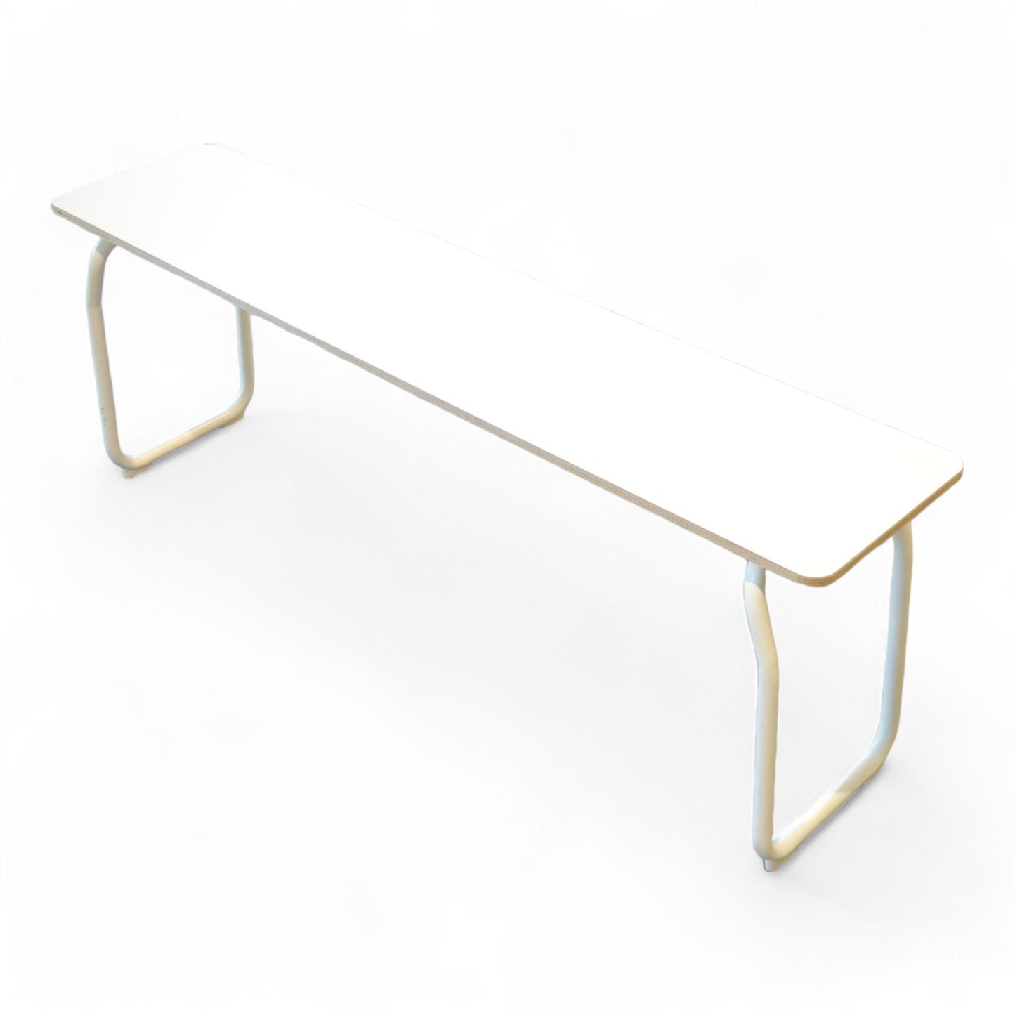 Benkens hjørne har et hakk og det er noen merker på bena, men benken er i ellers god stand.