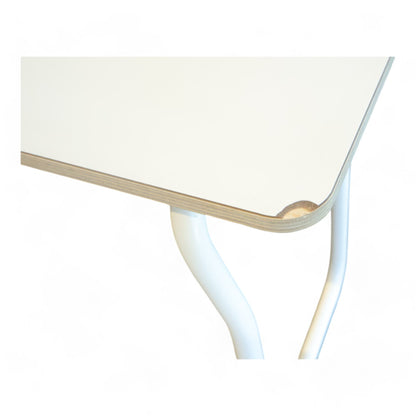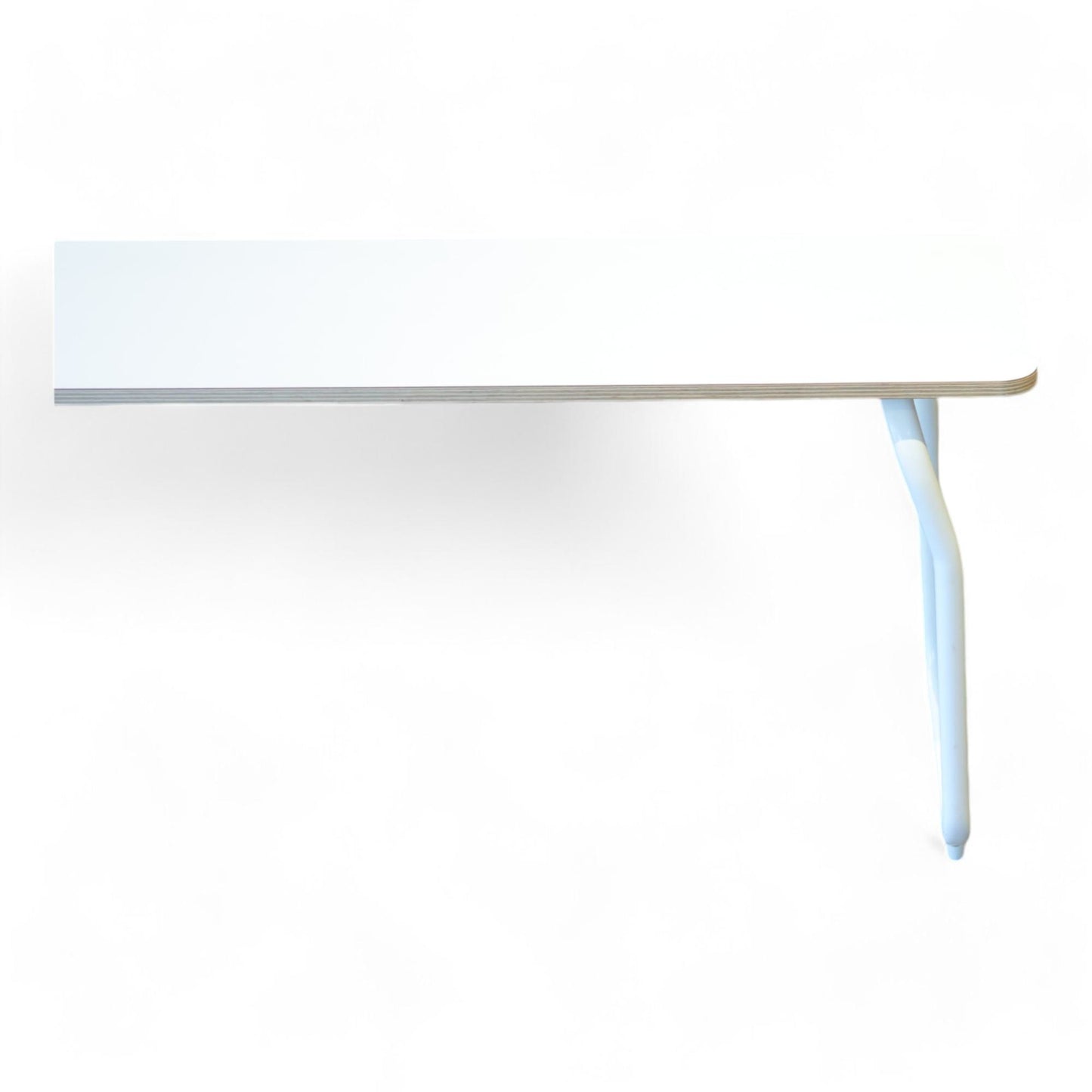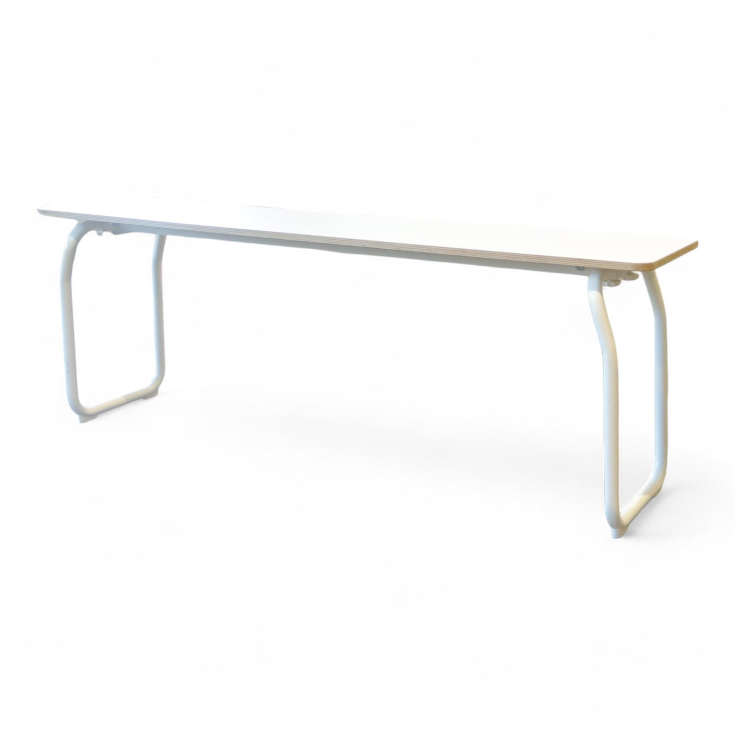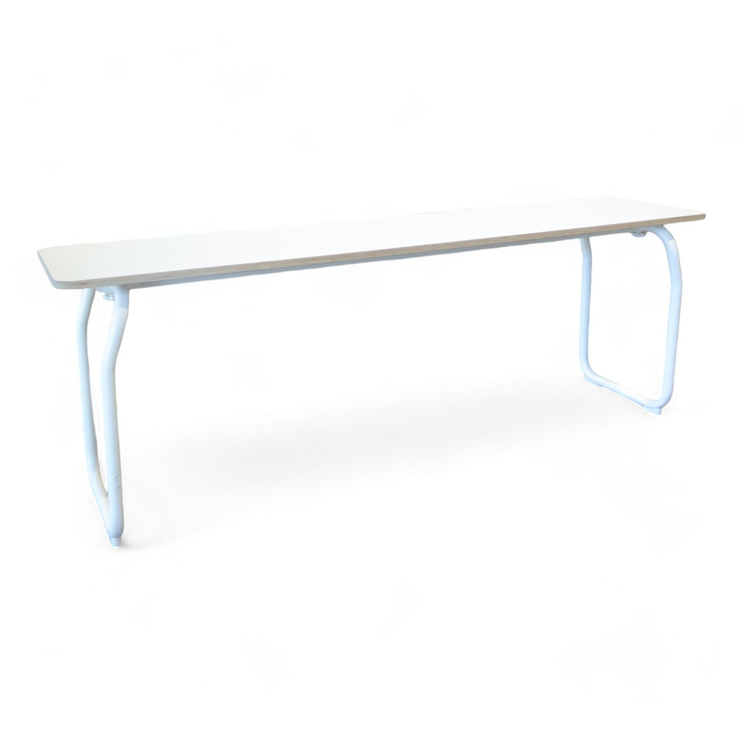 Benkens hjørne har et hakk og det er noen merker på bena, men benken er i ellers god stand.