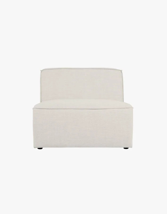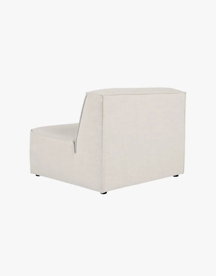 Trendy og svært komfortabel 2-seter sofa i et stilrent og slitesterkt tekstil med fransk kantsøm. Denne modulsofaen har en moderne uformell stil med skjulte ben, som gir et rent og minimalistisk uttrykk. Bygget på en solid ramme av heltre furu og kryssfiner, gir det en stødig og holdbar kvalitet. Sofaens naturlige farge tilfører rommet en lys og åpen atmosfære, perfekt for både stue og kontor.