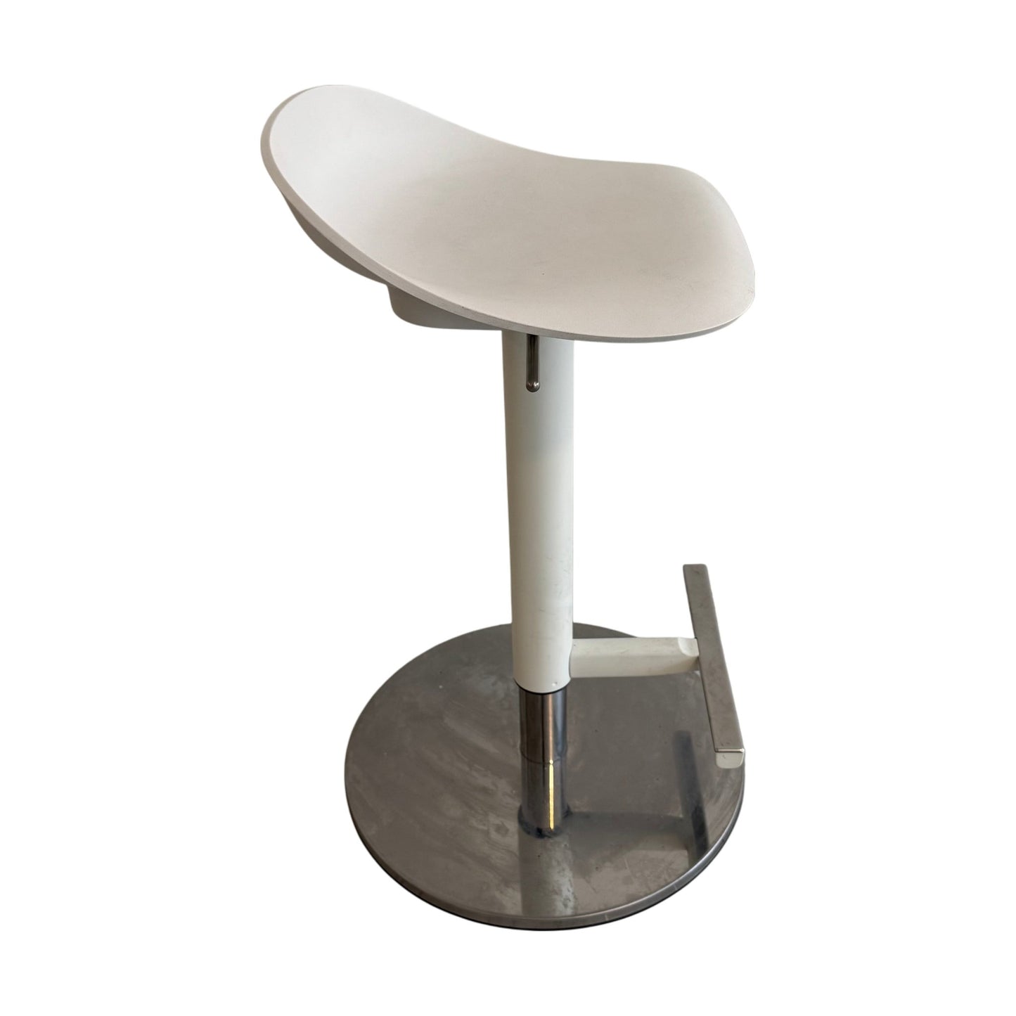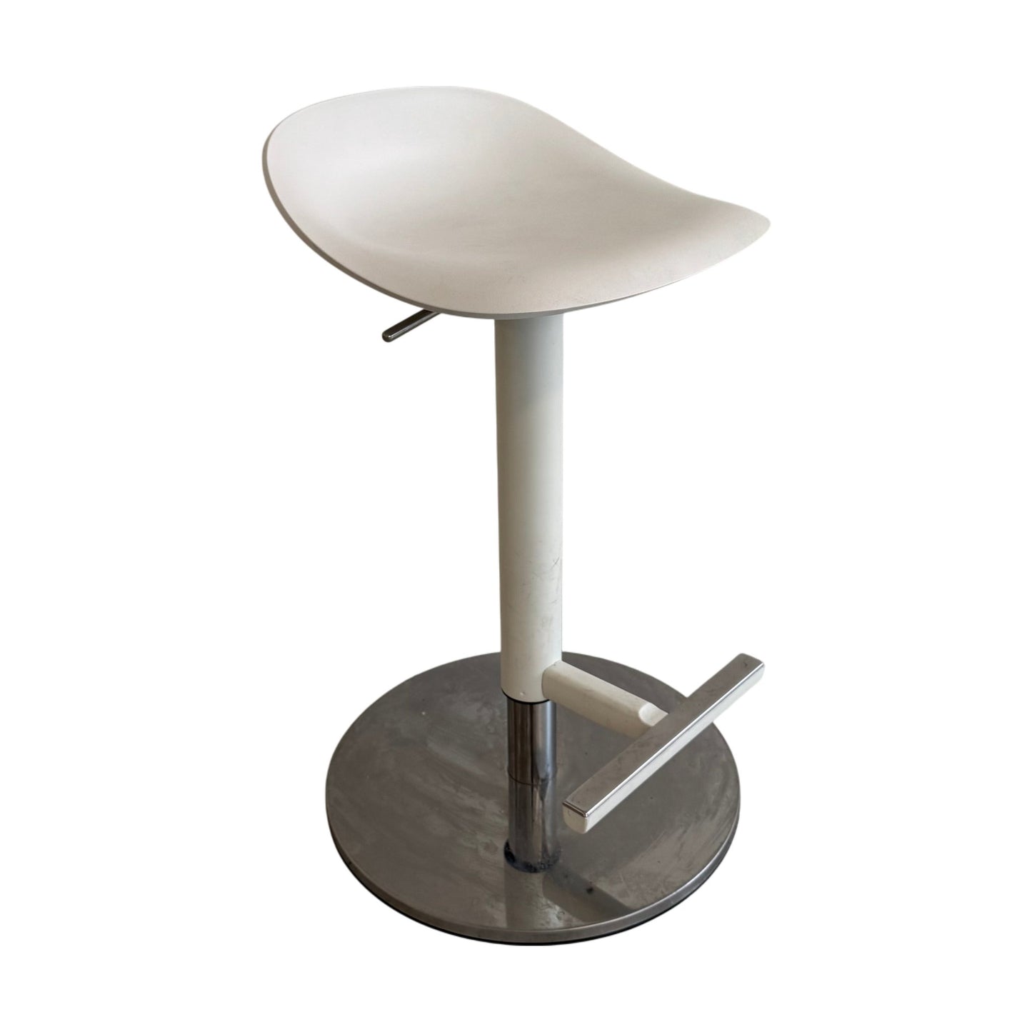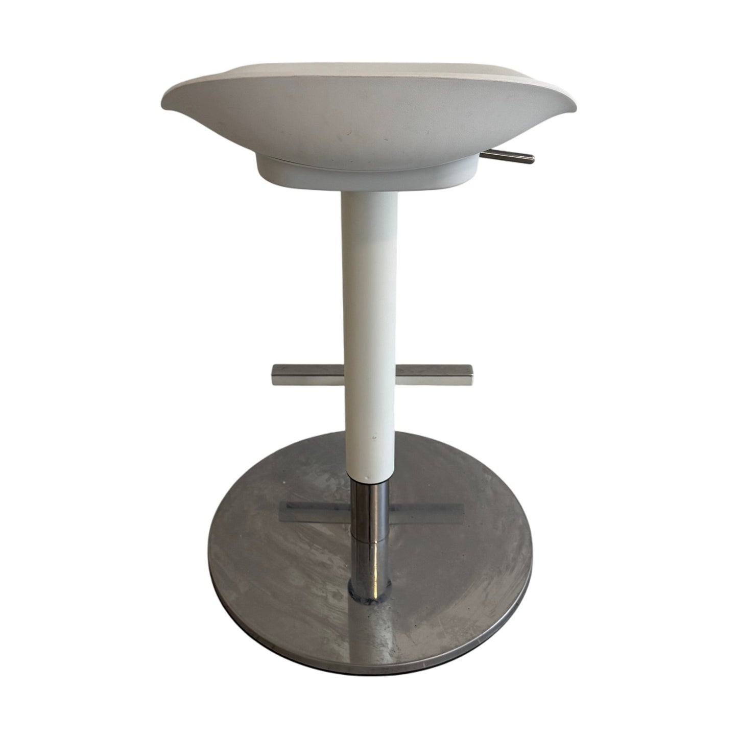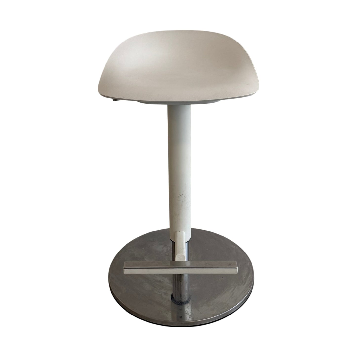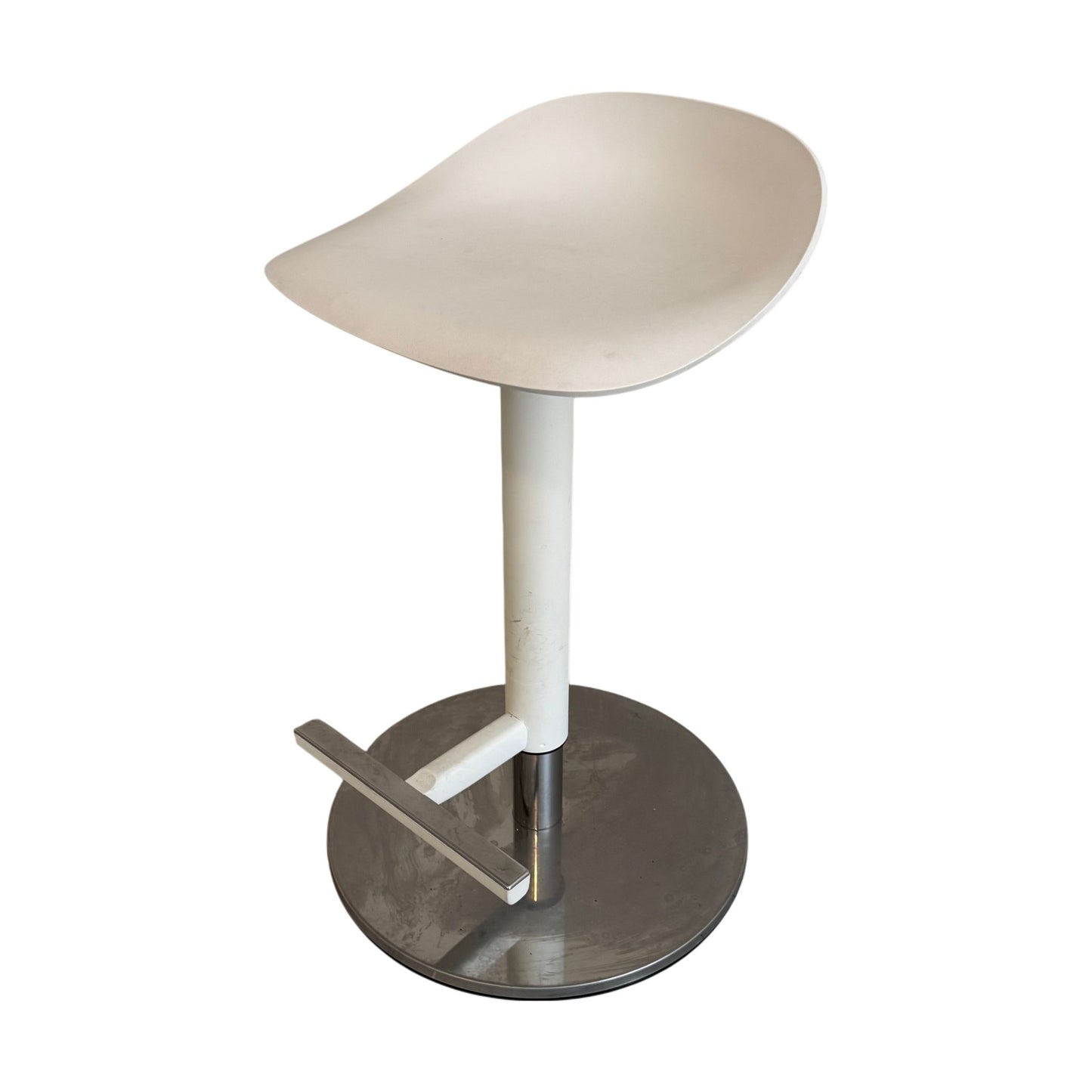 Barstolen er i god stand, med noen skraper og merker, spesielt synlige på stolbenet. Disse skavankene påvirker ikke funksjonalitet eller komfort, og stolen vil fortsatt være et stilfullt tillegg til ethvert rom.