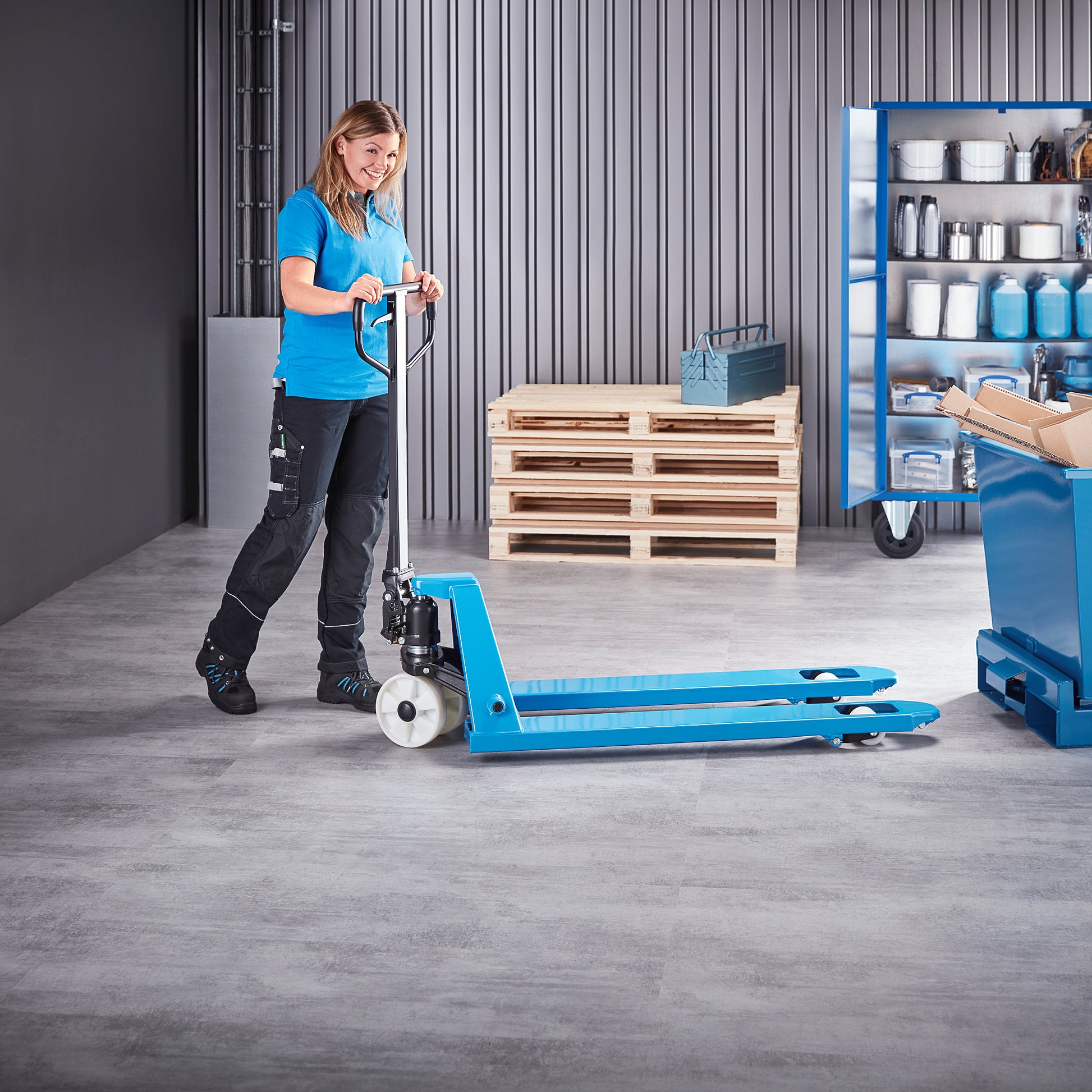 Jekketralle RAPID fra AJ Produkter er designet for effektiv håndtering av tungt gods med en maksimalt løft på 2500 kg. Denne jekketrallen kommer med et stilrent design i blått stål og er utstyrt med klatrehjul foran som gir optimal manøvrerbarhet.