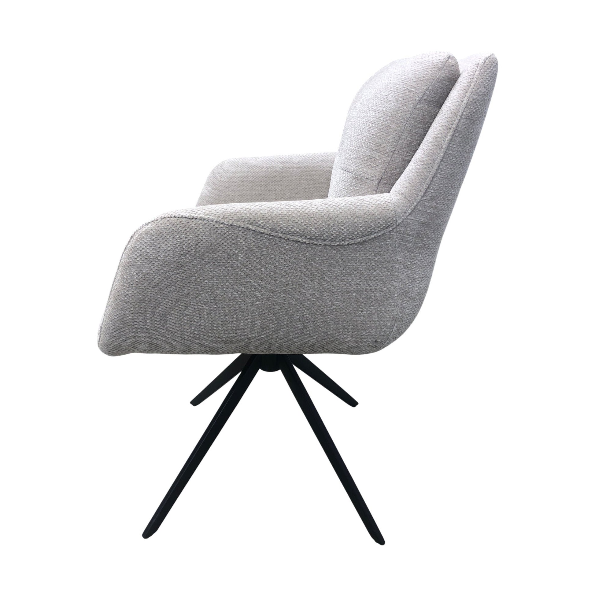 Jenny spisestol er designet for deg som ønsker en stilren spisestue uten å gå på kompromiss med komfort. Det myke, pustende vevde stoffet gir en behagelig sitteopplevelse, mens den ekstra polstrede ryggstøtten sørger for god støtte under lange middager. Armlenene har skumfyll for økt komfort, og det svingbare understellet med automatisk returfunksjon gir større bevegelsesfrihet rundt spisebordet. Fargen er en varm hvit.