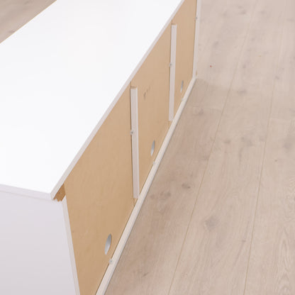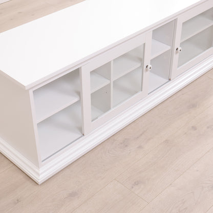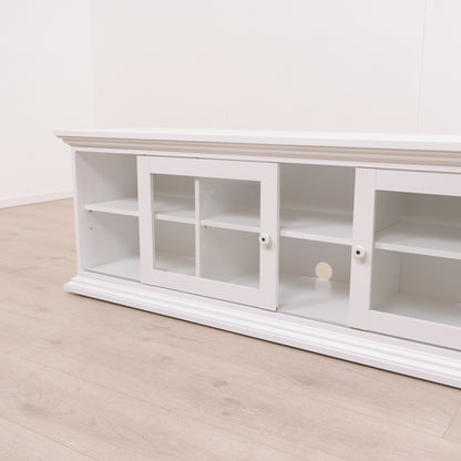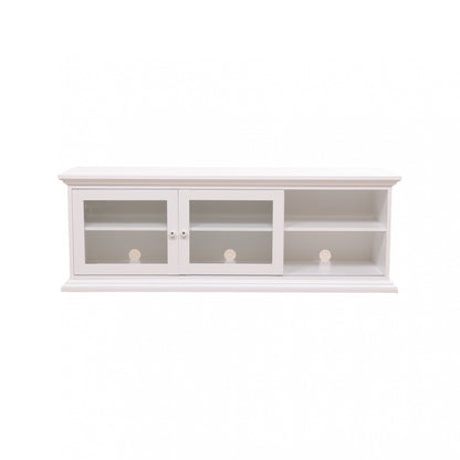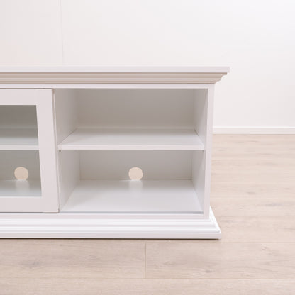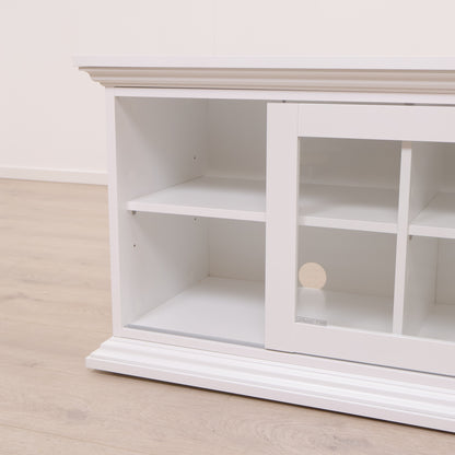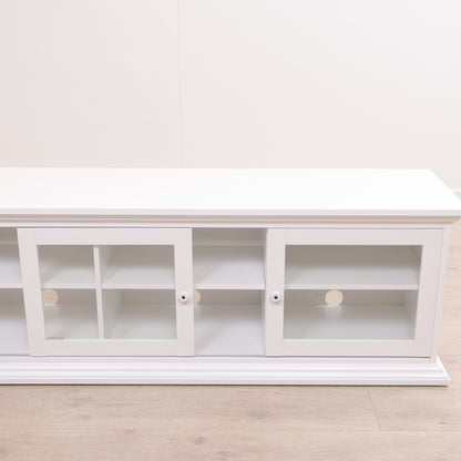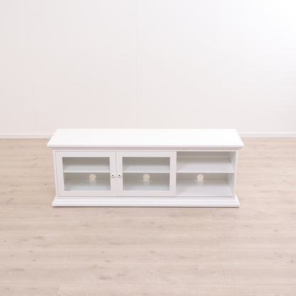 Jysk | Kun brukt til utstilling | Hvit Fredensborg TV-benk med hyller og skyvedører i herdet glass