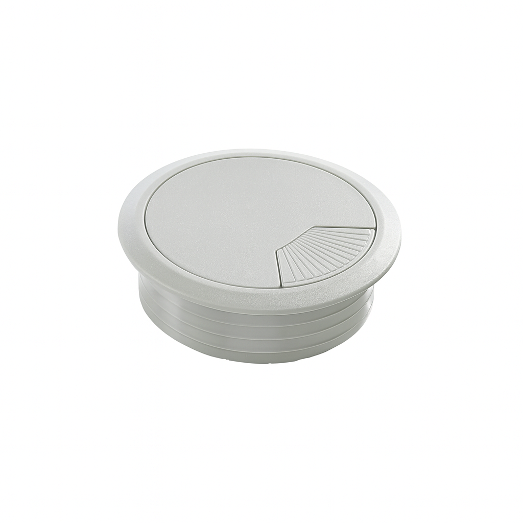 Kabellokk i plast er designet for å skjule og organisere kabler på en effektiv måte. Den har en praktisk diameter på 80 mm og en diskré lys grå farge, som gjør den til et stilrent valg for kontor og moderne arbeidsplasser. Kabellokket er laget av holdbart ABS-materiale, noe som sikrer langvarig bruk.