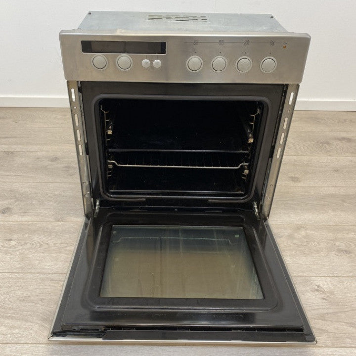 Whirlpool (Mod.: AKZ277/IX) rustfritt innbyggingsovn med front i sølv farge og svart glass. Ovnen har en hurtig-funksjon for rask oppvarming av ovnen, statisk funksjon, kakefunksjon, og flere varianter av både vifte- og grill funksjoner. Kommer med 1stk rist og 2stk stekebrett. Ovnen er vasket innvendig og utvendig med lite bruksmerker. Det er en eldre ovn, og den er godt brukt.