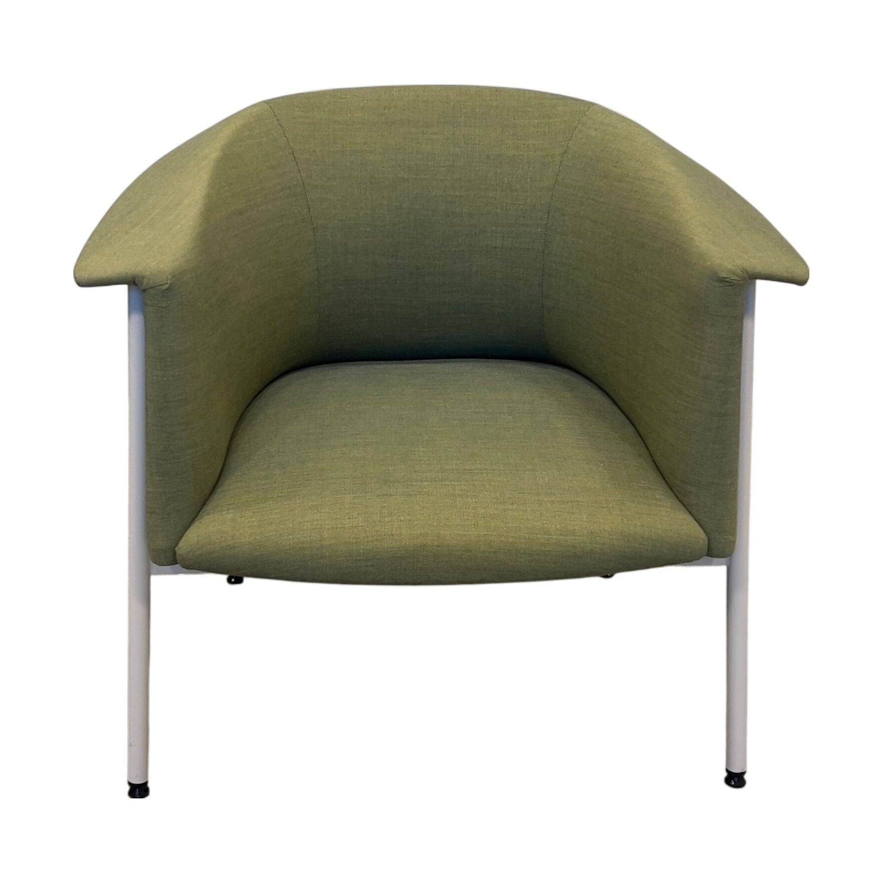 Lenestolen er i god stand med minimale brukstegn. Trekket er rent og uten synlige flekker eller skader, og setet har beholdt sin komfort. Ingen merker på bena er observert.