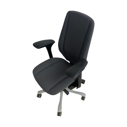 Kinnarps 9000 kontorstol med justerbare armlener, rygg og sete. Medfølger bruksanvisning. Trekk i grått.