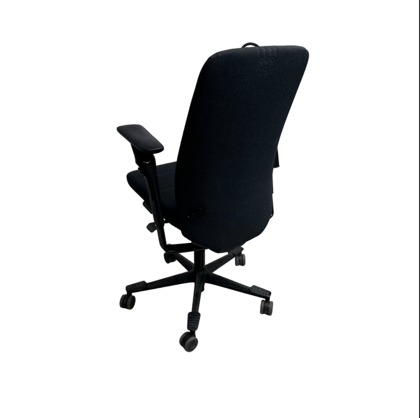 Det er noen merker på toppen av ryggen etter fjerning av nakkestøtte, men stolen er ellers i funksjonell og god stand.