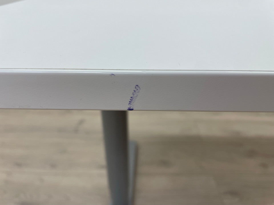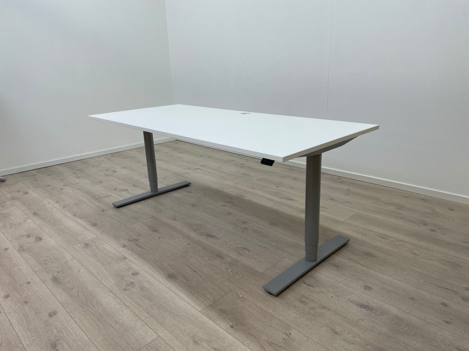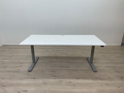 Kinnarps elektrisk hev/senk skrivebord med hvit bordplate og grått understell. Pent brukt med kun normale bruksmerker.